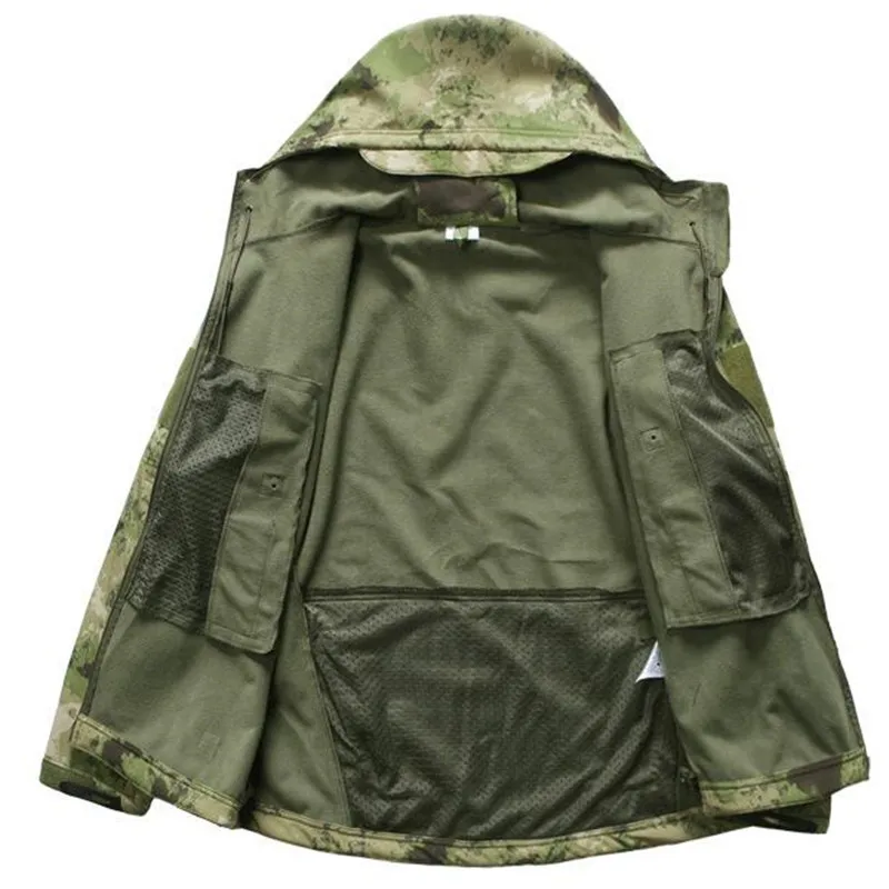 Военная камуфляжная тактическая куртка для мужчин из кожи акулы, мягкая оболочка V5, водонепроницаемая ветрозащитная куртка с капюшоном, верхняя одежда для охоты на полеты