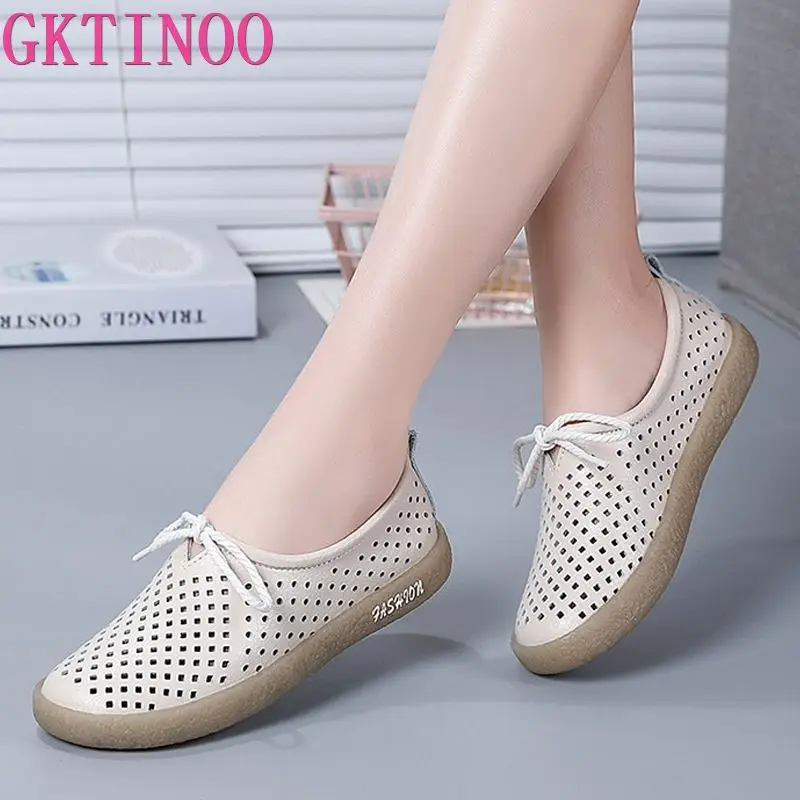 Женские дышащие Мокасины GKTINOO, из натуральной кожи, на мягкой подошве, белые, для лета