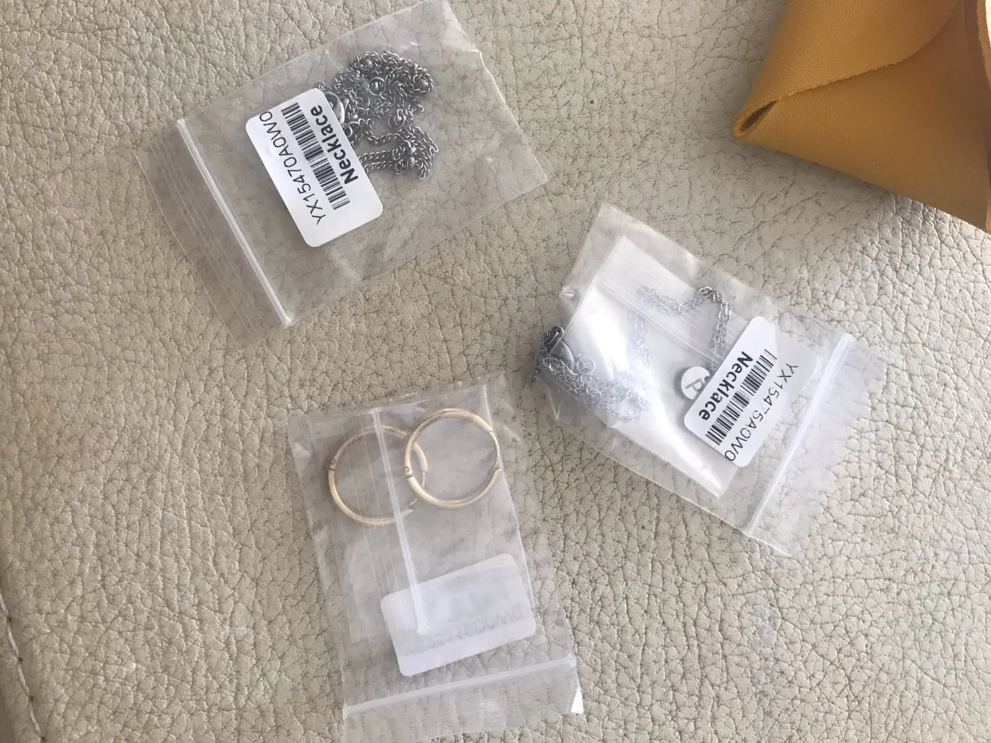 Это второй раз, когда я спрашивал этого поставщика и очень доволен. На этот раз я был удивлен деталями кожаной сумки, которые я считаю такими пухленькими. Все это поставляется в индивидуальной сумке, и они являются суперконечными цепочками. Серьги не весят ничего. Очень удобно носить :)