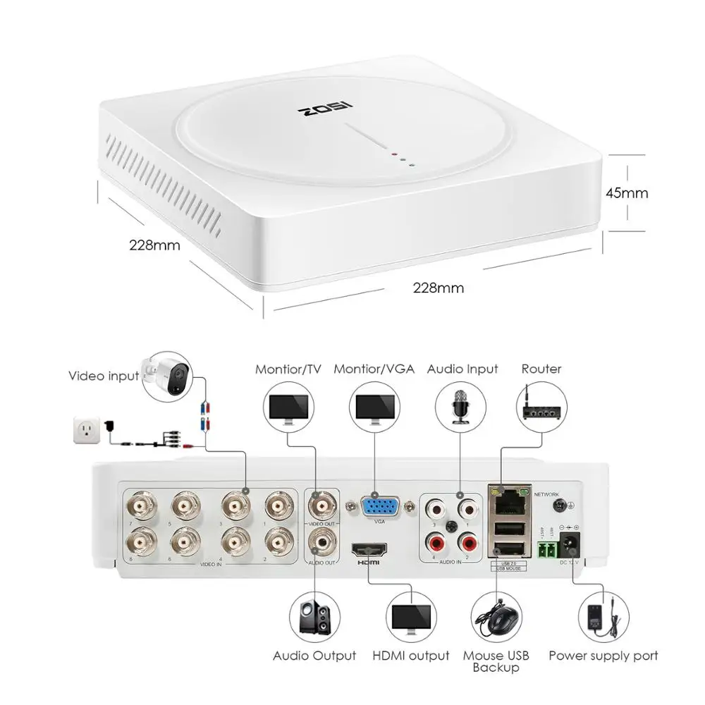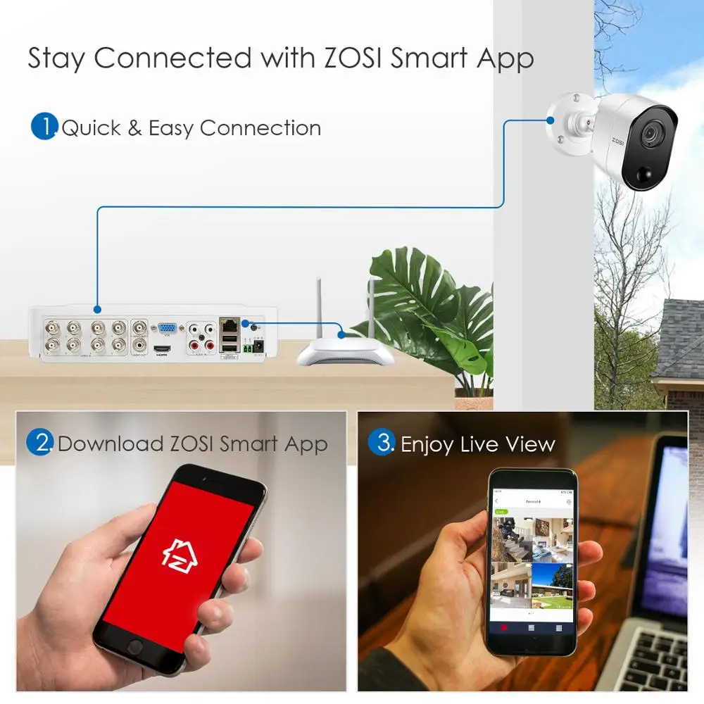 ZOSI 8-канальный CCTV Системы 8x5 Мп на открытом воздухе безопасности Камера s видеонаблюдения DVR комплект с ПИР Сенсор дома Secueity Камера