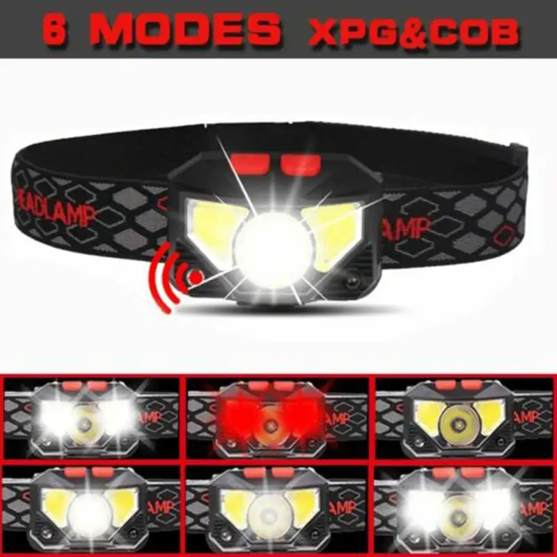 Фонарь налобный с датчиком движения, 6 режимов работы, встроенный а...