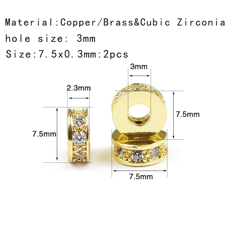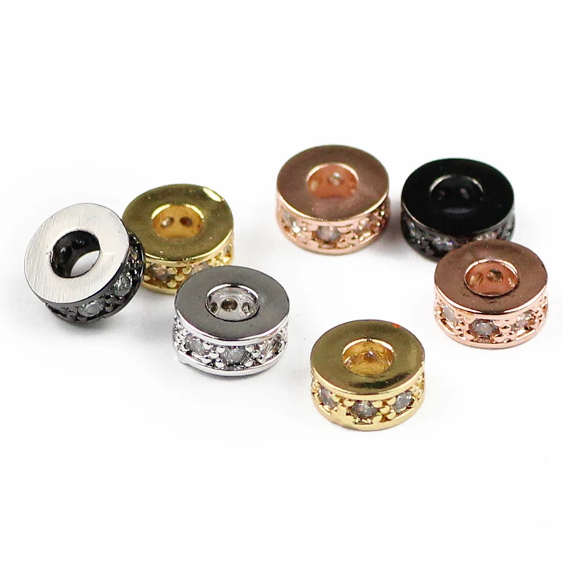 Upgfnk 4 шт. 7,5 мм Монета медные бусины-спейсеры на плоской подошве золотистого цвета, Круглый Проложить циркониевые амулеты металлический свободные бусины для изготовления ювелирных изделий браслет DIY