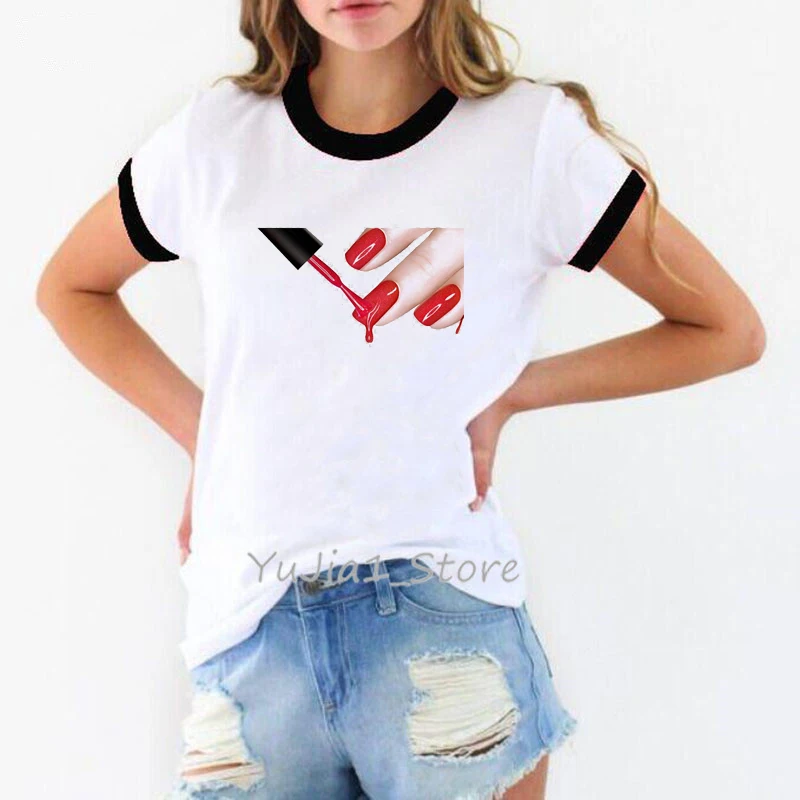 Черная футболка, женская футболка в стиле 90-х с надписью i am not perfect buy nails are funny, милая для лака для ногтей