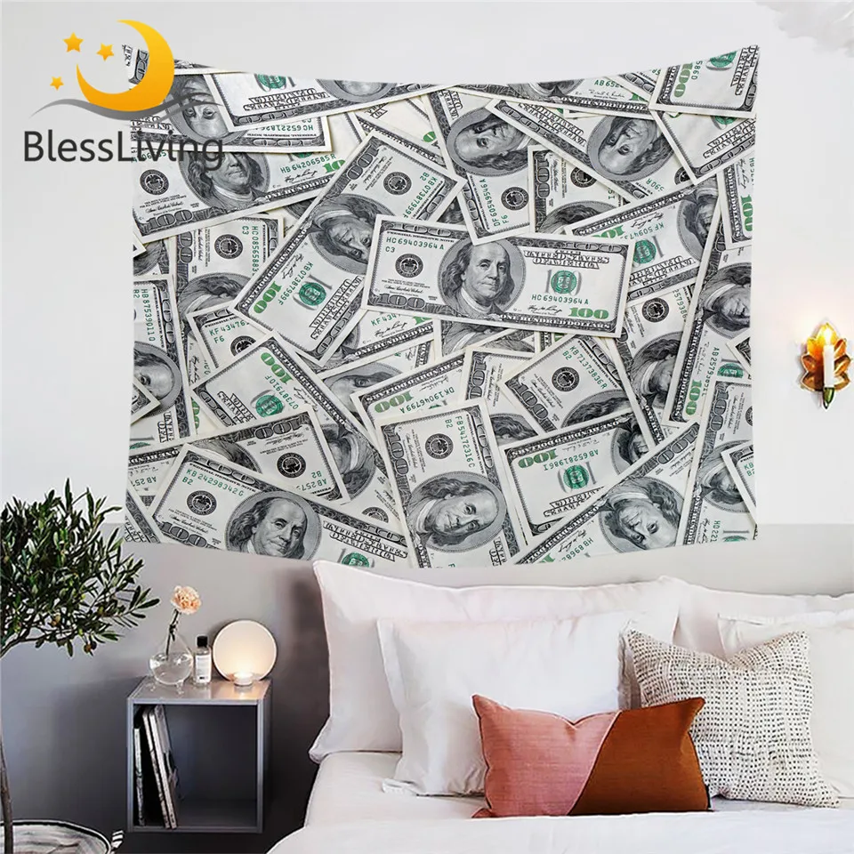 Настенный гобелен с рисунком денежных денег, декоративный настенный ковер с принтом долларов, яркое покрывало 3D, Современная простыня