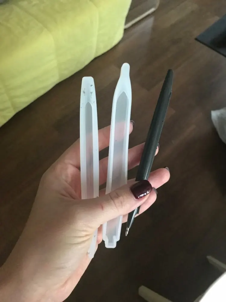 форма отличная, соответствует описанию, доставка быстрая 2 недели в Удмуртию. Еще не пробовала, купила стержни в магазине канцтоваров по 2,20 -2,50 руб, длина стержня 142мм, не все стержни подходят, надо примерять. длина самой формы 148мм. Понравилось, что внутри в форме есть специальная штучка, которая не позволяет эпоксидке залиться внутрь стержня!