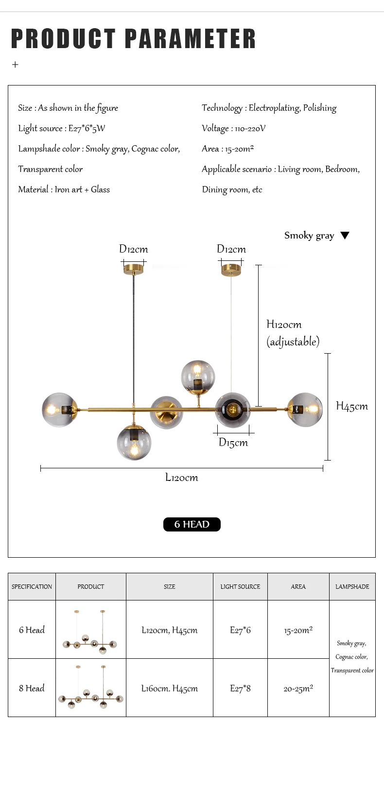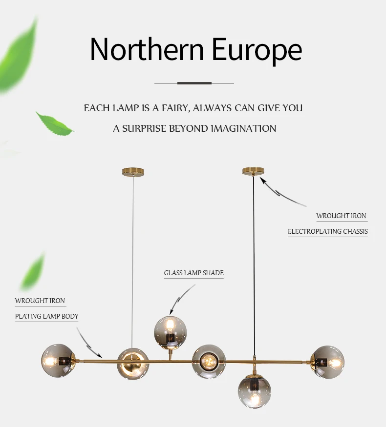 Название: скандинавские стеклянные шарики E27, люстры в сдержанном стиле, крытый светильник новейшего дизайна, художественный светильник для кафе, гостиной, украшения дома, светодиодный подвесной светильникРазмер: L120 * h45см, L160 * h45смМатериал: железо + стеклоДержатель лампы: E27Диапазон напряжения: 220 ВЛампа в комплекте: лампа в комплект не входитЦвет отделки: золотистыйПлощадь: 15-20 м²Применение: гостиная, спальня, столовая, магазин и т. Д.Доставка: 25-45 дней после получения депозита (если заказ срочный, время выполнения может быть сокращено)Упаковка: стандартная экспортная упаковкаС хорошим качеством и разумными ценами, мы приветствуем клиентов со всего мира