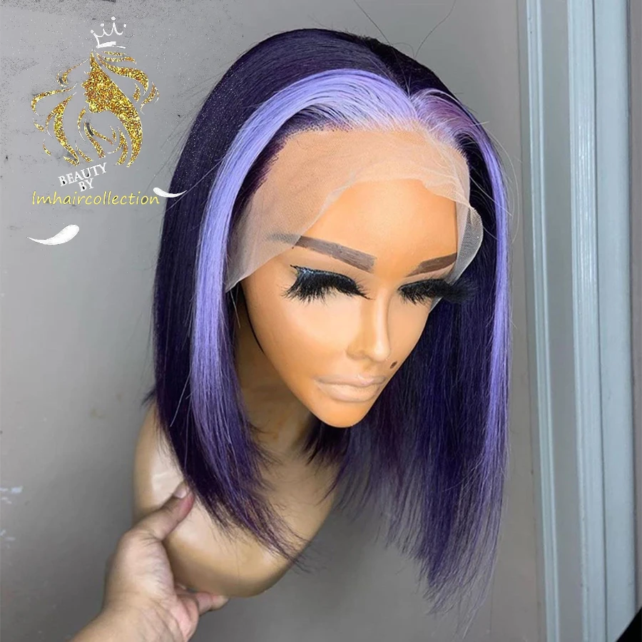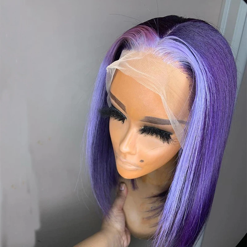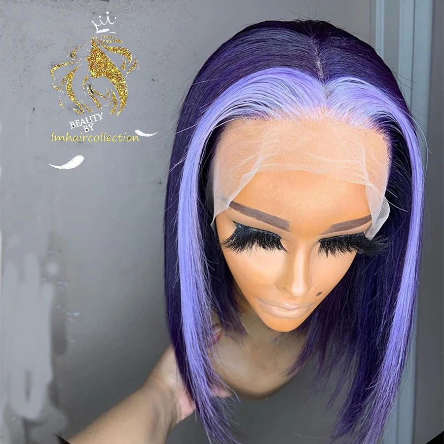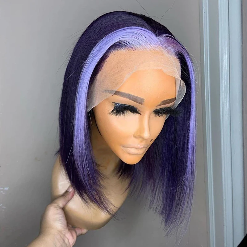 Парики из человеческих волос с кружевной частью, 5 Х5, шелковистые, прямые светильник-фиолетового цвета, парик Боб для черных женщин, предварительно выщипанные, с ребенком