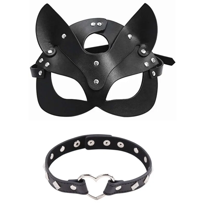 Соблазнительная маска порно на половину лица кошки для косплея, кожаная маска для хэллоуивечерние, ошейник в стиле панк для представлений, реквизит для секса
