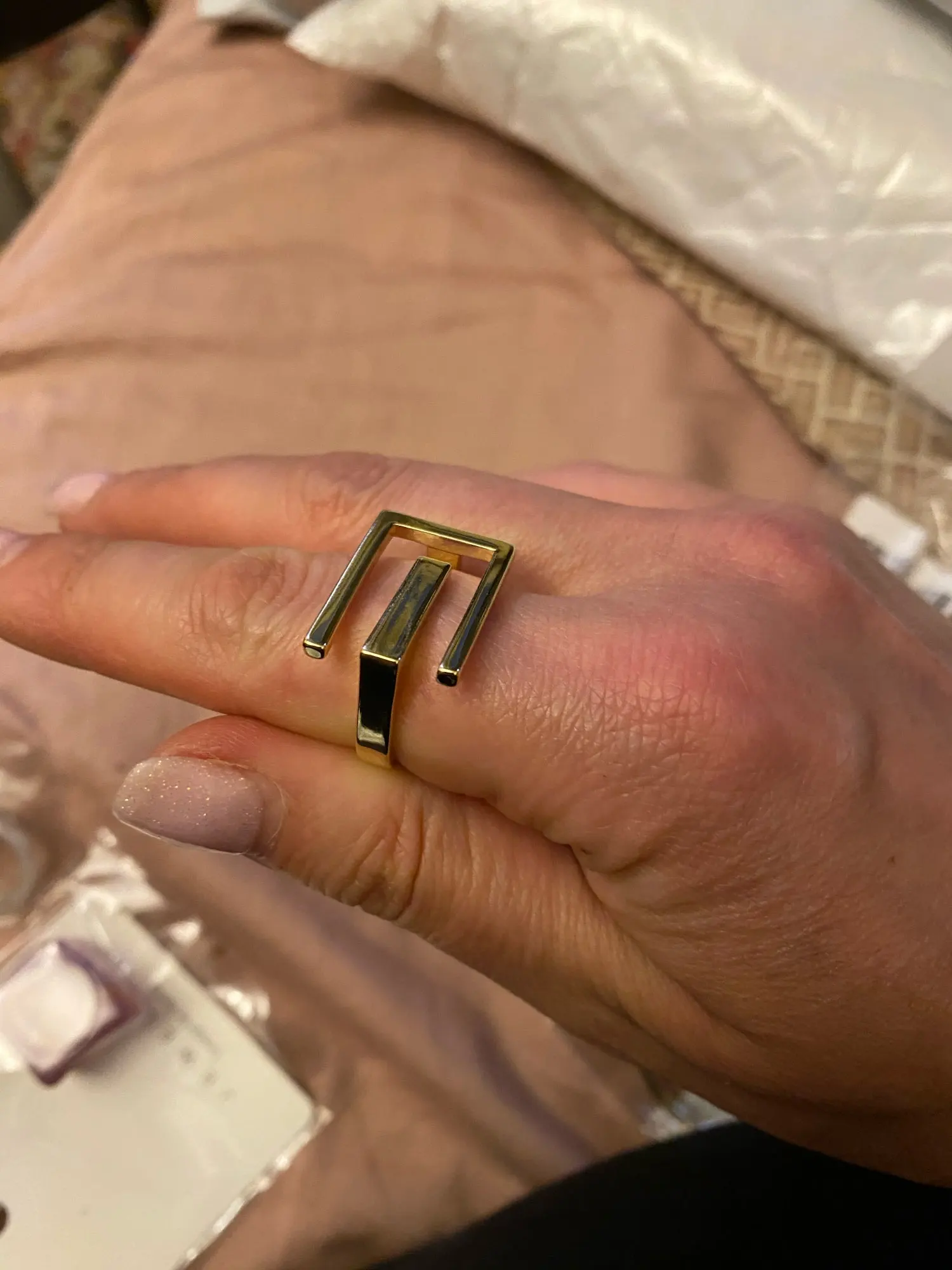 Приехал заказ очень быстро, несмотря на то, что пару раз его отправляли в другие отделения почты. Но, к сожалению, кольцо сильно погнуто. Попробую, конечно, поправить. Но металл толстый, не знаю, получится ли. Но вообще, красивое, сделано качественно