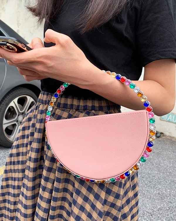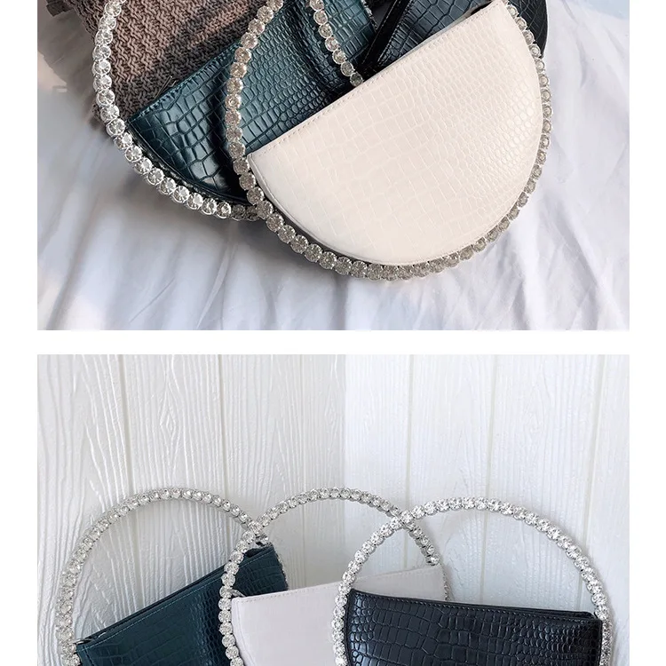 Роскошные модные женские кошельки и сумочки в форме полумесяца с цветными бриллиантами, вечерняя сумка, дизайнерская сумка-клатч под змеиную кожу для вечеринки