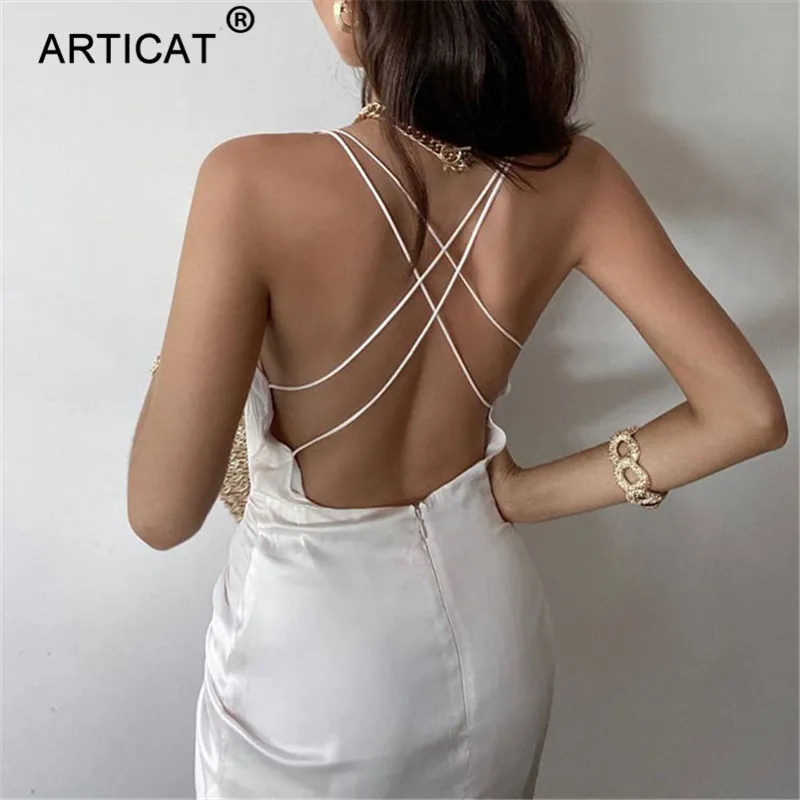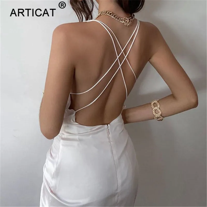 Женское атласное мини-платье Articat, облегающее Бандажное платье с рюшами и открытой спиной на бретелях, для вечерние и клуба, на лето, 2020