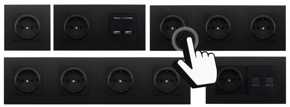 Настенная розетка с USB зарядным интерфейсом DE EU штепсельная вилка 2 Gang двойная розетка 146 мм * 86 мм черная металлическая рамка из алюминиевого сплава переходник usb,разетка с usb для дома,розетки
