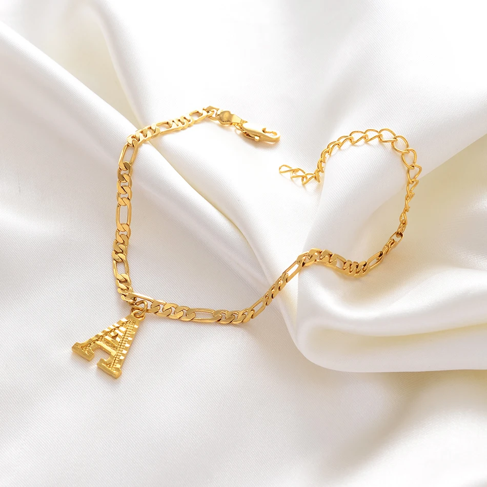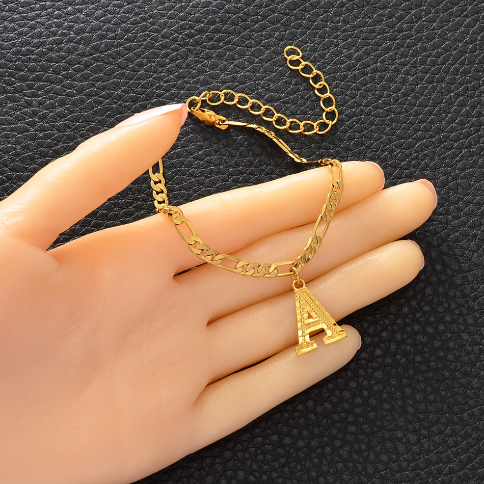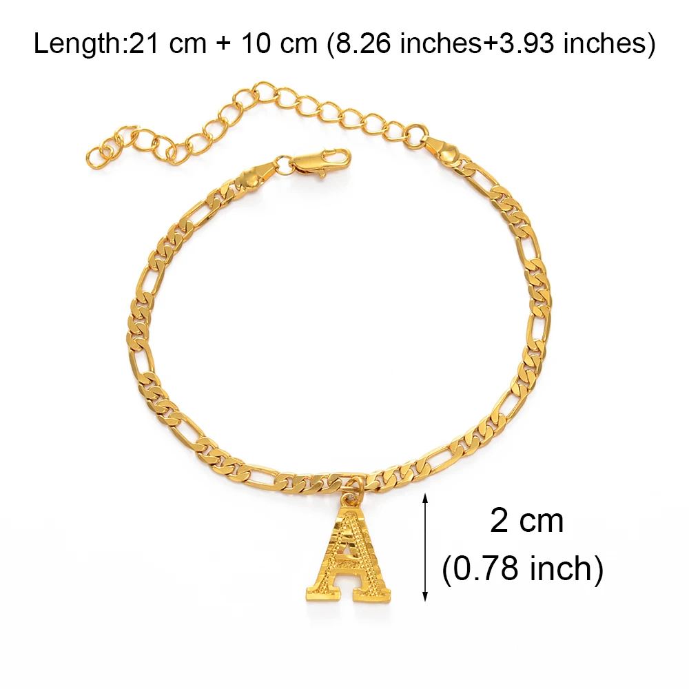 Anniyo 21 см + 10 см удлиняющаяся цепочкаA-Z первоначального анклет с буквами Для женщин девочек ювелирные изделия ножной браслет Фигаро цепи #233806