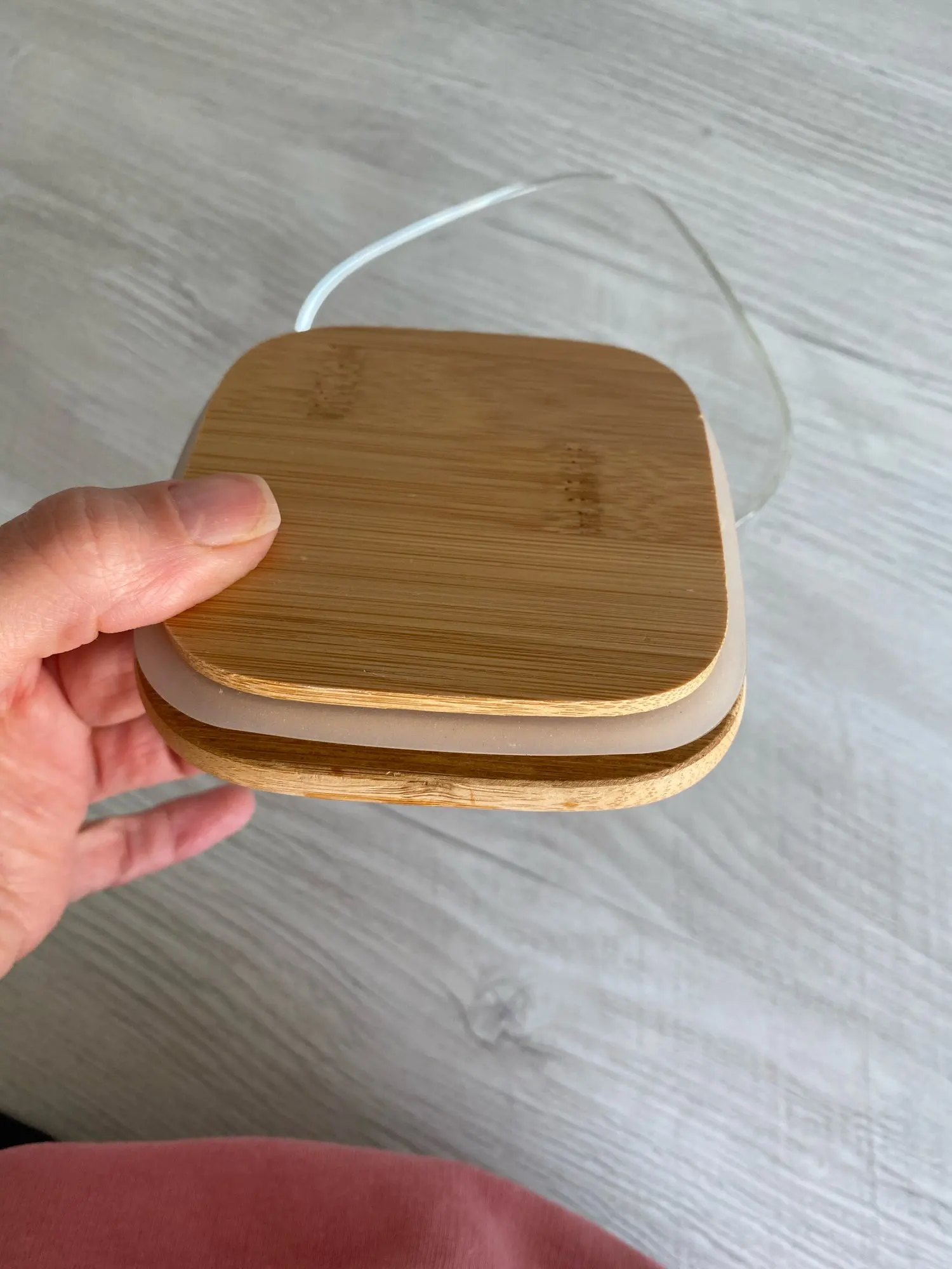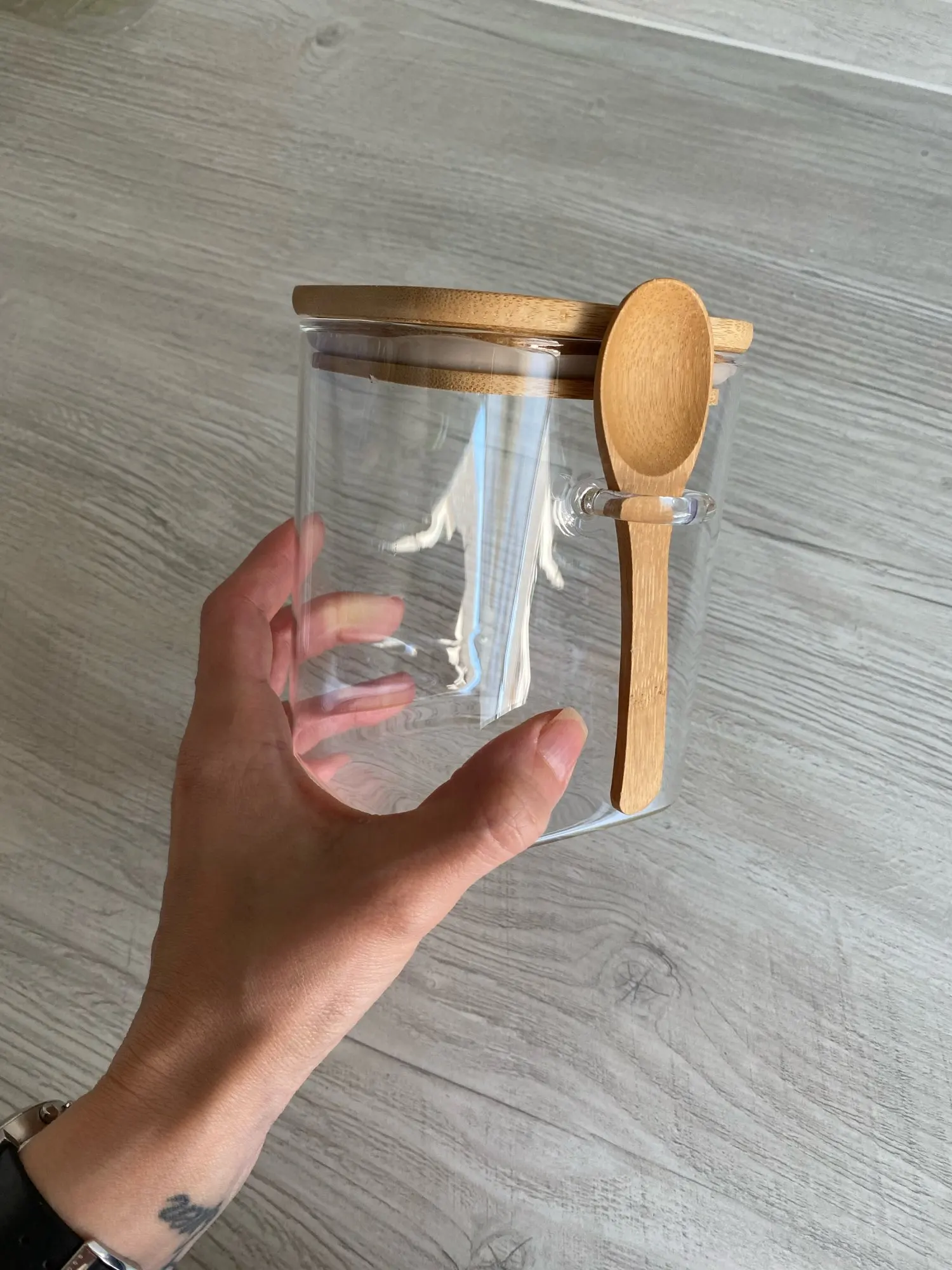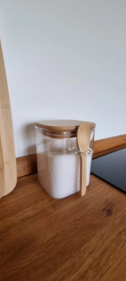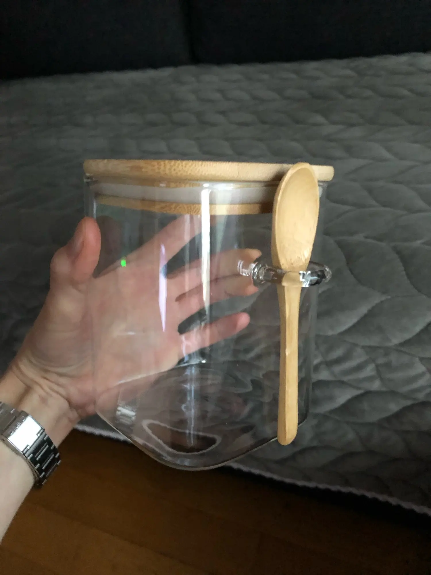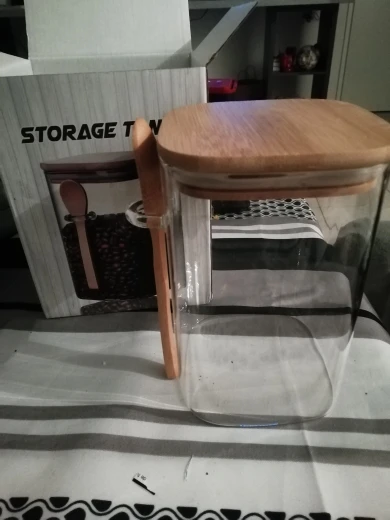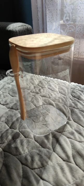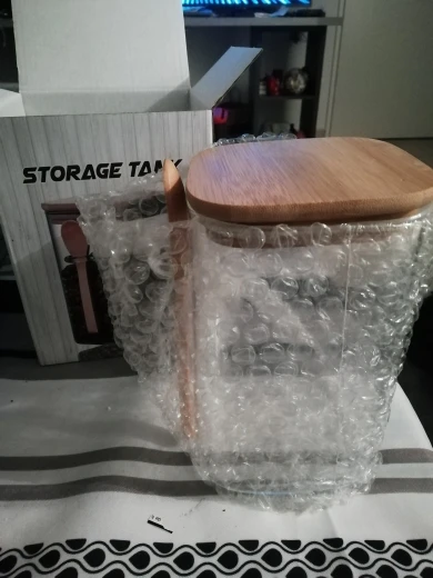 The item arrived in perfect condition, wrapped in thick bubble foil. The glass feels a little fragile, but it is the price for lightness. Anyway, one should always handle glassware with care and this one is no exception. According to my own measurement, the jar has a total volume of 1600 ml instead of 1200 ml, so the advertised volume should be understood rather as usable or practical volume. Measured outer dimensions are 10 x 10 x 18 cm (18,7 cm with bamboo lid). Recommended.