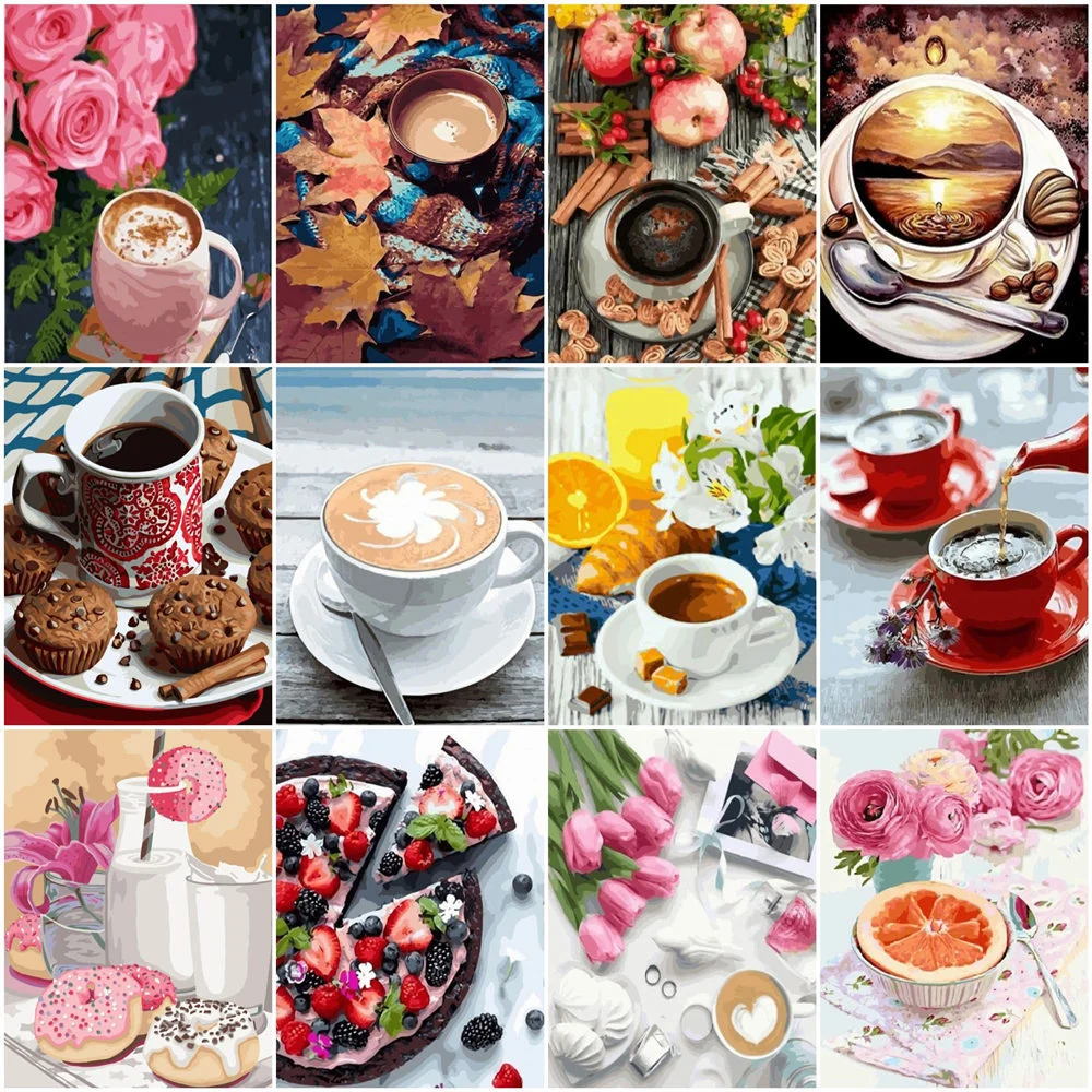 HUACAN живопись маслом по номерам кофе рисунок на холсте Ручная роспись живопись искусство подарок DIY фотографии по номеру торт наборы домашний декор