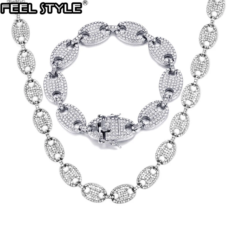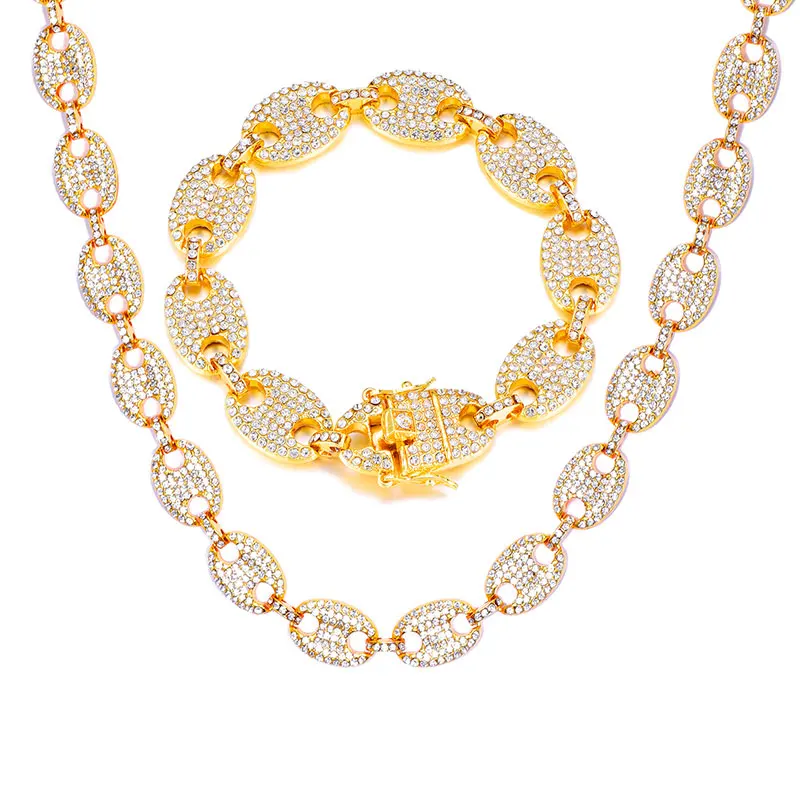 Часы + цепочка + браслет в стиле хип-хоп, кофейное ожерелье со льдом из сплава, стразы в виде Свинки, ожерелье с цепочкой, ювелирные изделия для мужчин