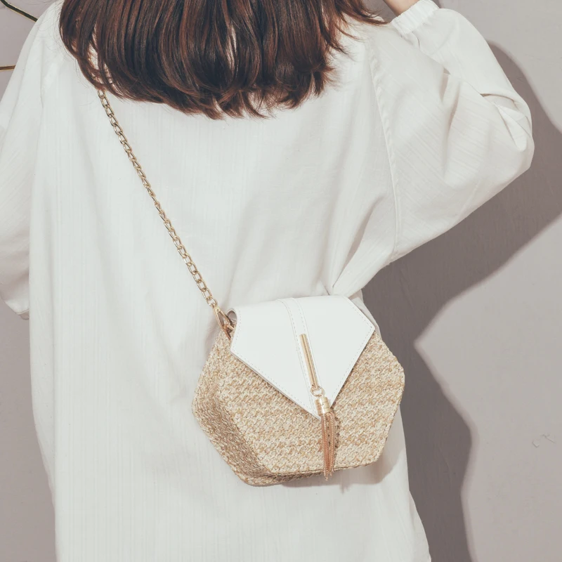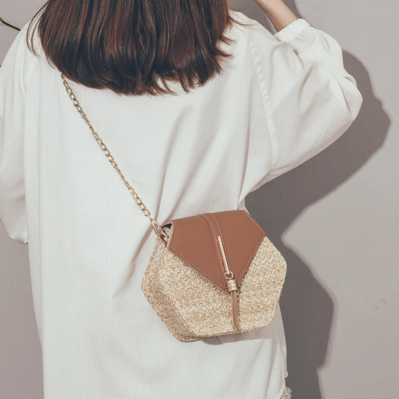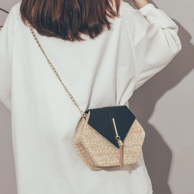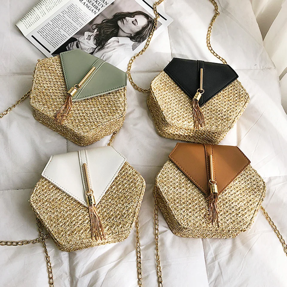 Богемные Ротанговые женские сумки через плечо, шикарная шестиугольная плетеная лоза, сумка через плечо, женские летние пляжные соломенные сумки, маленькие кошельки ручной работы