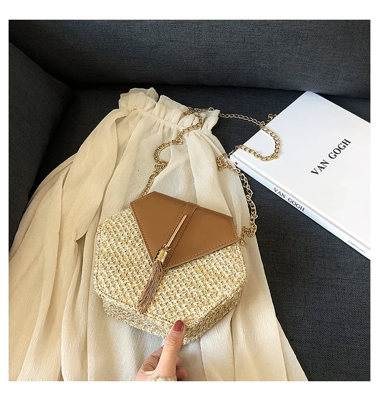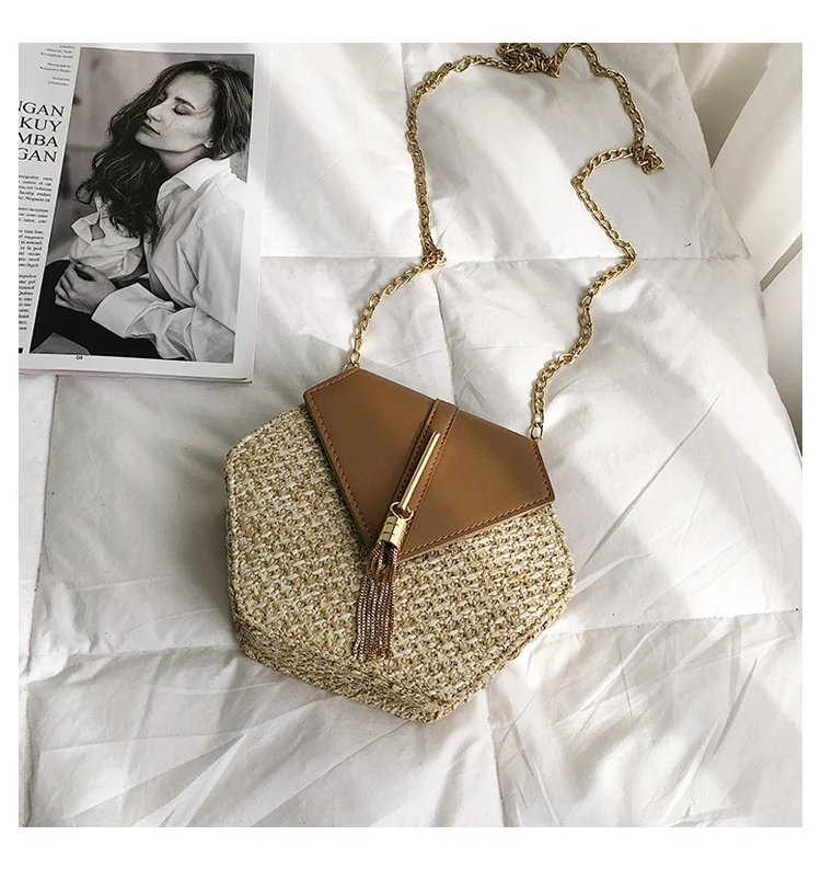 Плетеная пляжная круглая богемная новая шестиугольная соломенная су...
