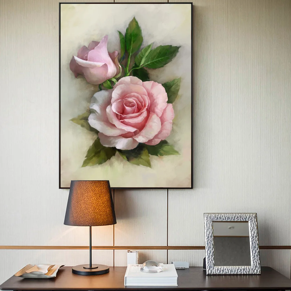Скандинавский винтажный цветок розы, картина маслом на холсте, настенный постер и принты, Скандинавская картина для гостиной, Декор