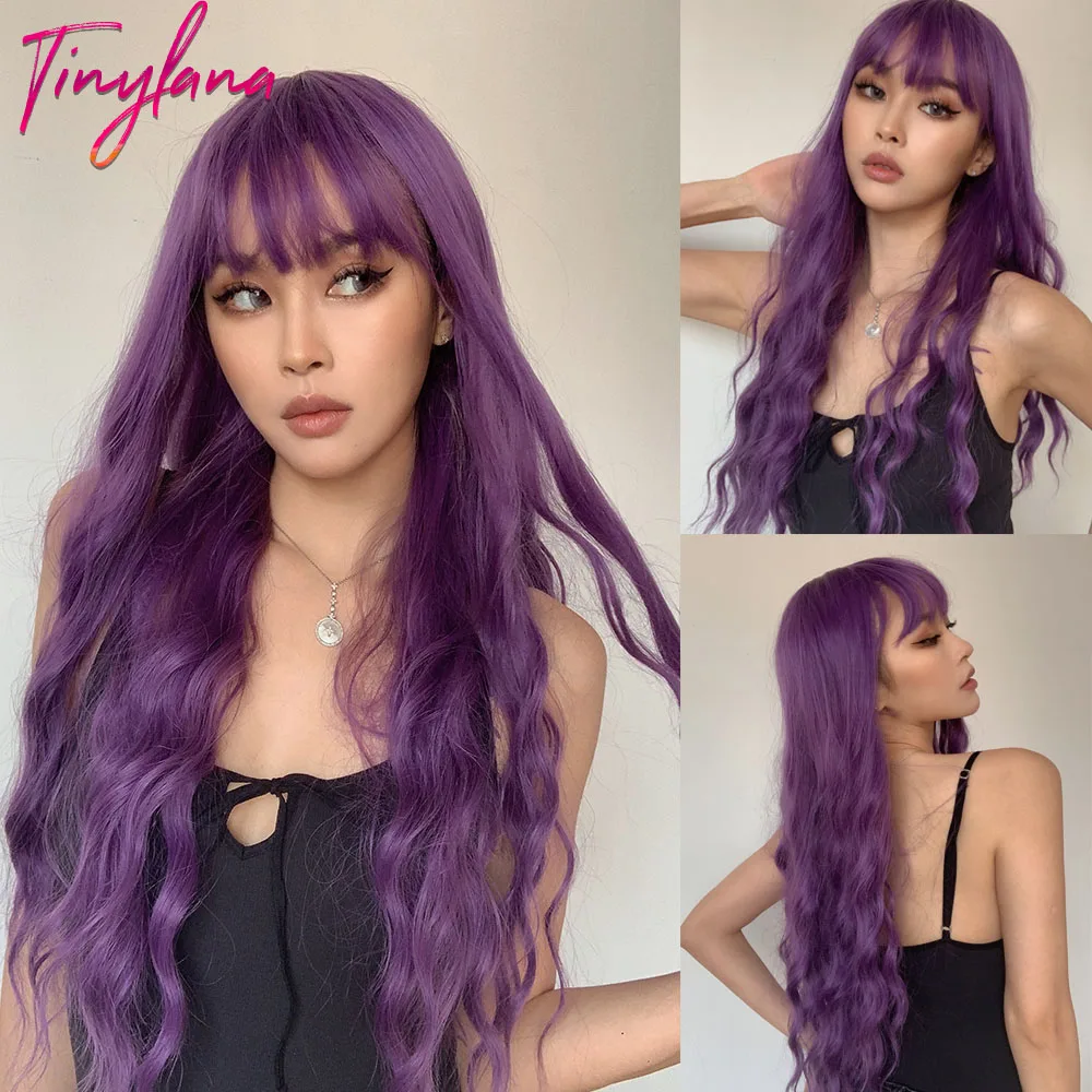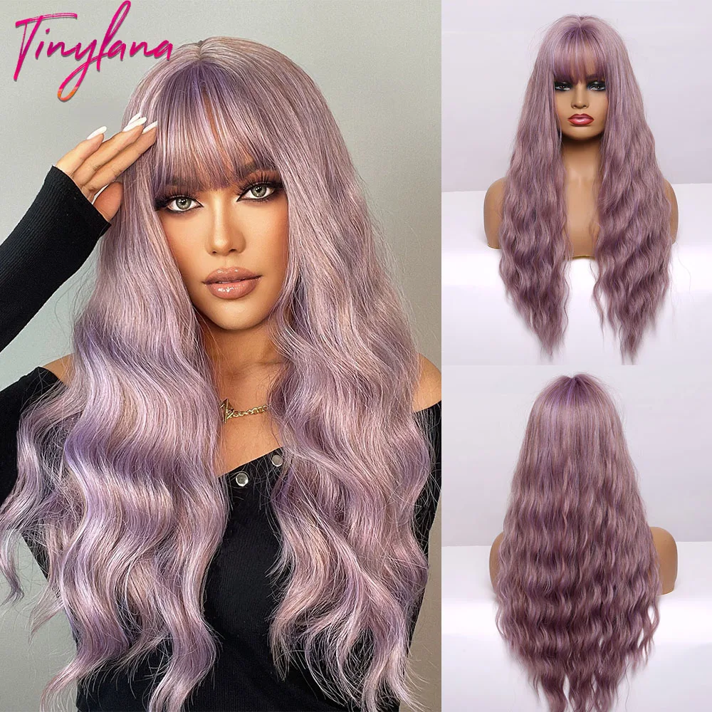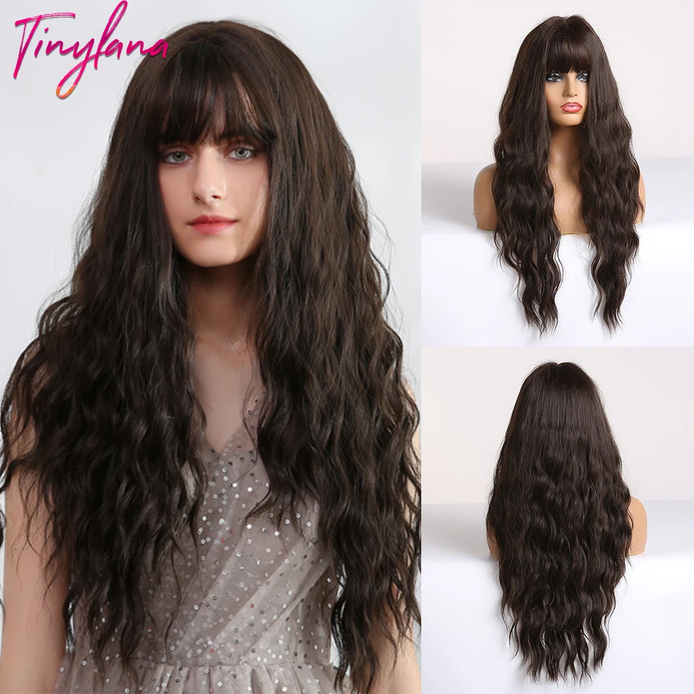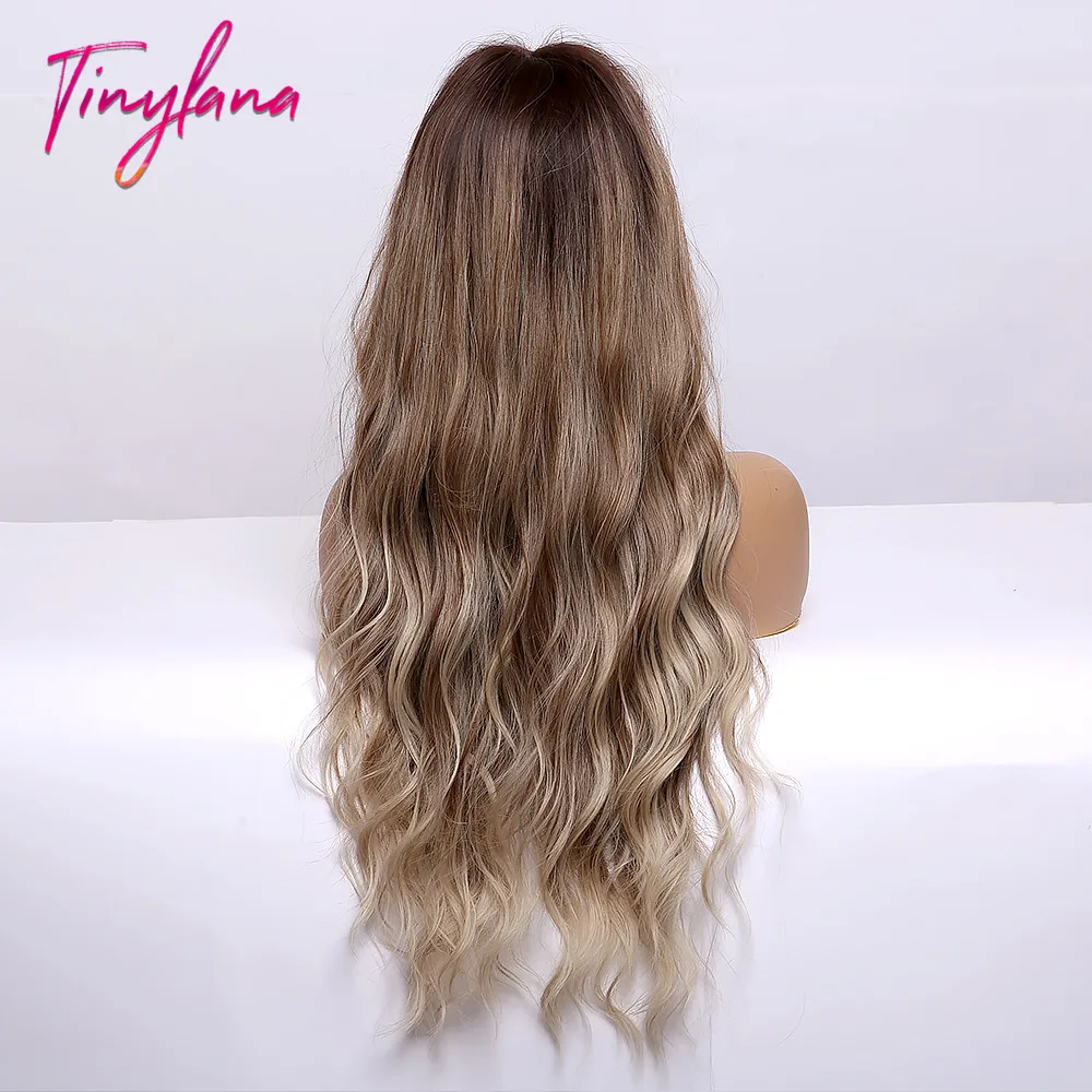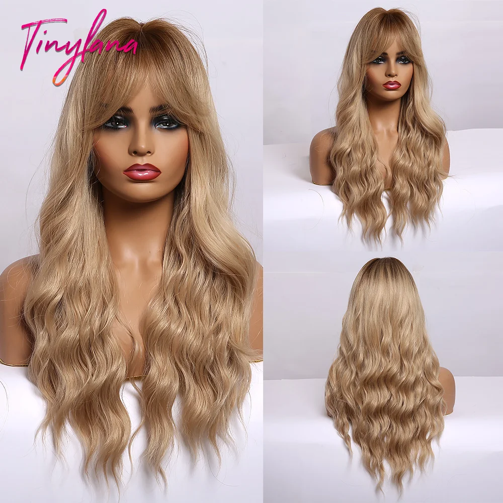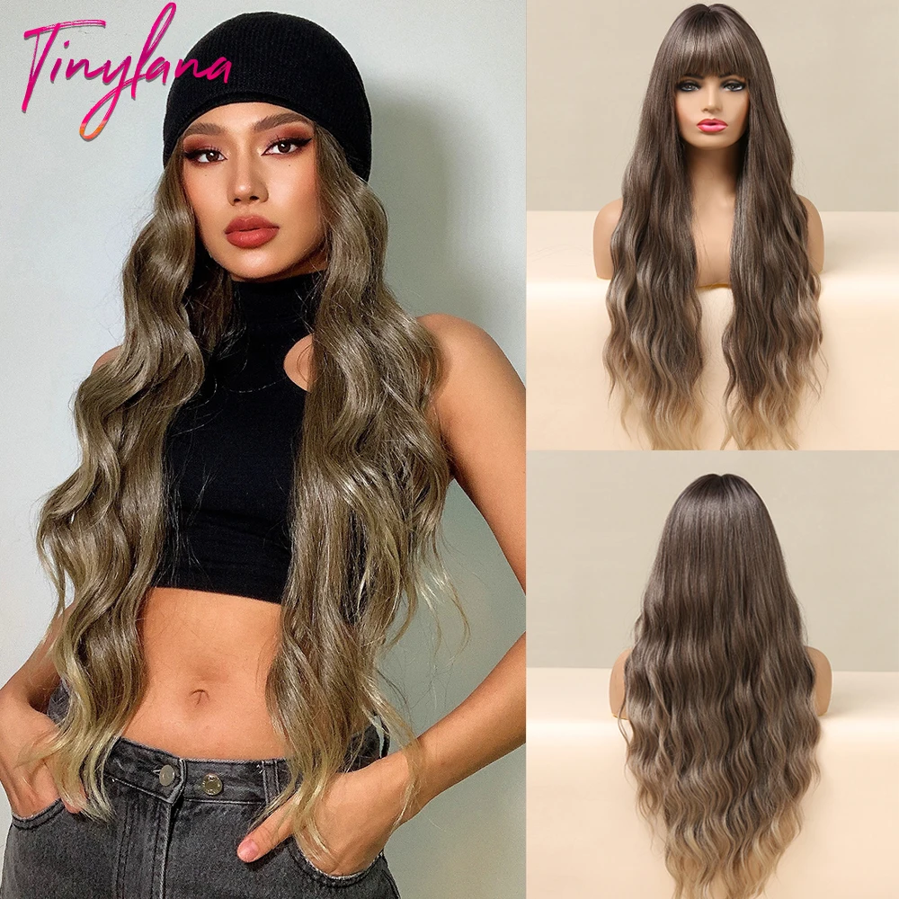 Миниатюрные Синтетические длинные волнистые волосы Лана, парики с Омбре от коричневого до светлого цвета с челкой для женщин, натуральные волосы для косплея, термостойкие волосы