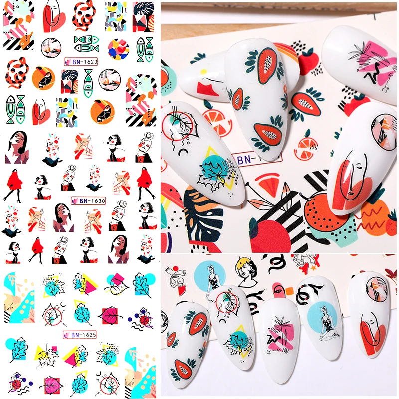 12 шт., разноцветные наклейки с водяными знаками, разные узоры, наклейки для ногтей, декоративные наклейки для ногтей