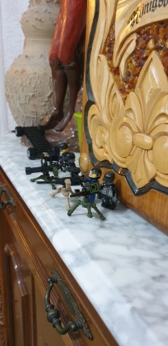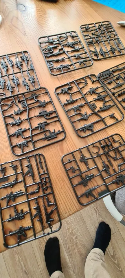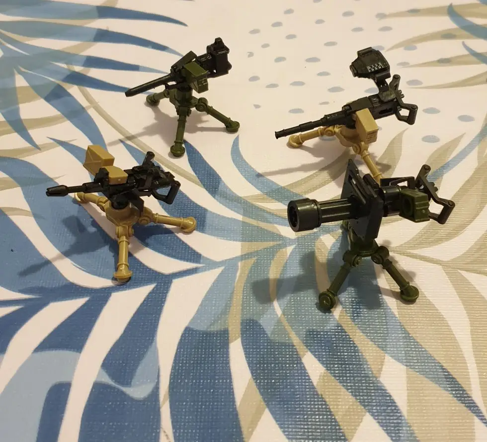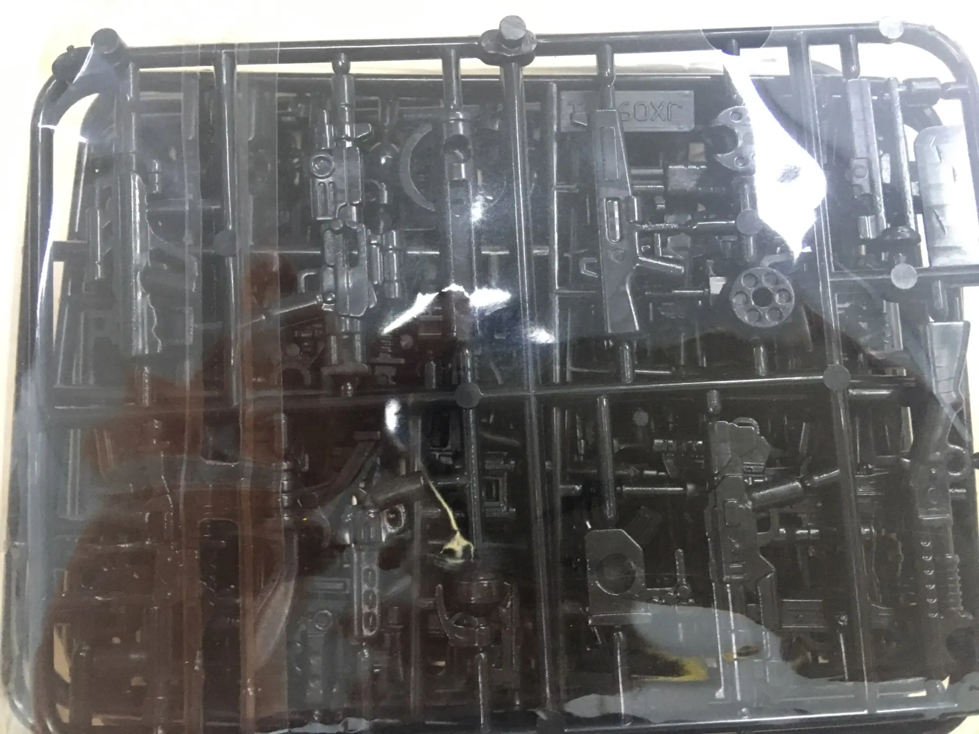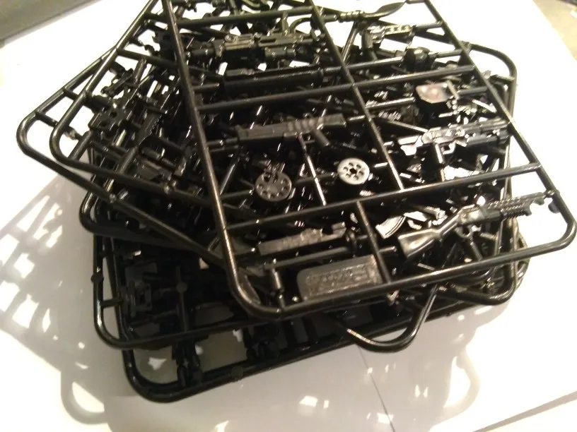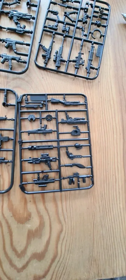 Пластик хорошего качества, идеально подходит для комплектации силы, но я поставил только 3 звезды, потому что на фото мы видим 4 оружия, установленные на 4 штатива, но когда я получил посылку, в сумке было 4 оружия, но только 2 штатива, так что будьте осторожны. В противном случае в целом пакет был хорошо упакован, спасибо.