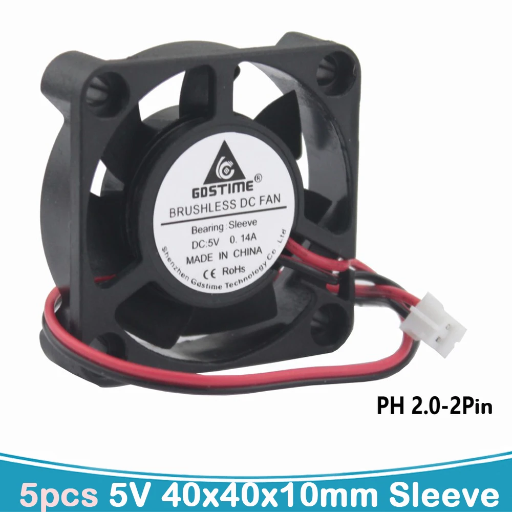 Бесколлекторный кулер Gdstime DC 5 В, 2 контакта, 4 см, 40x40x10 мм, 4010, охлаждающий вентилятор в корпусе, 5 шт.
