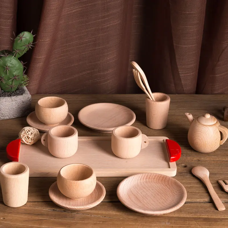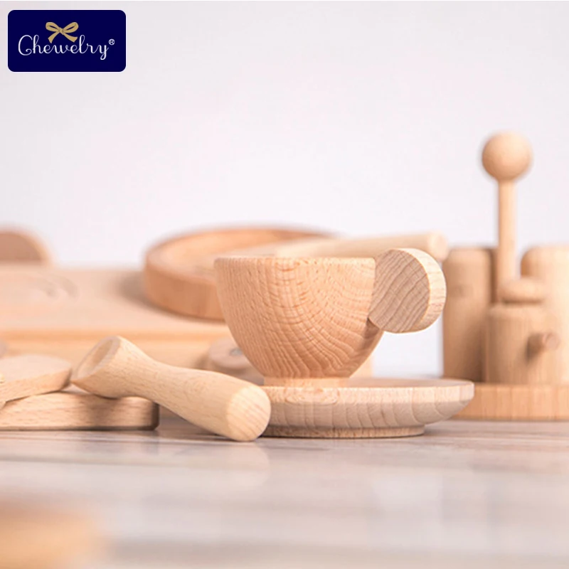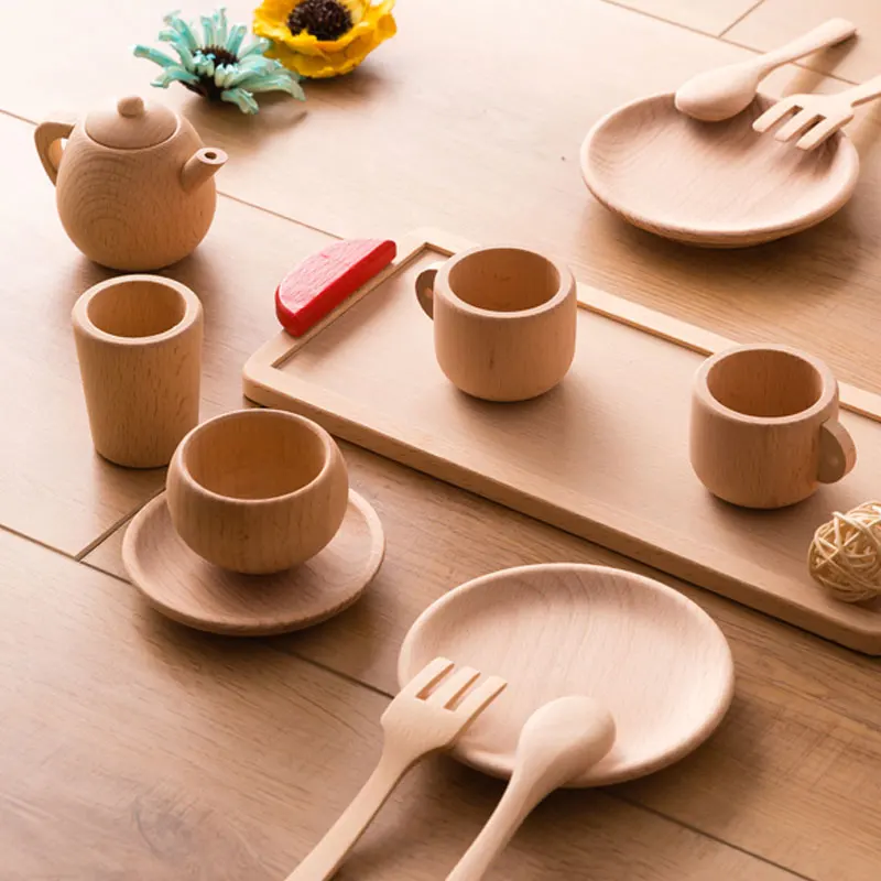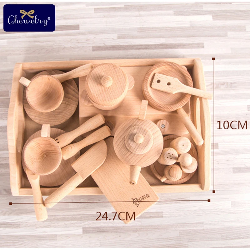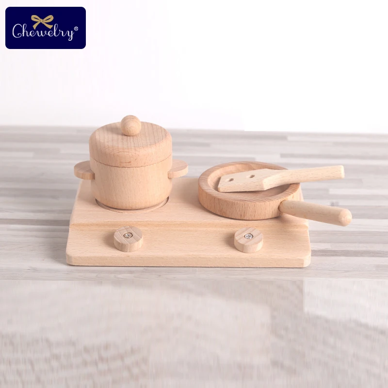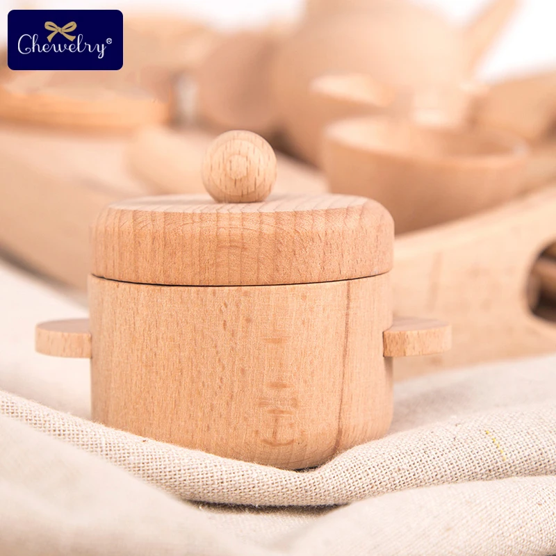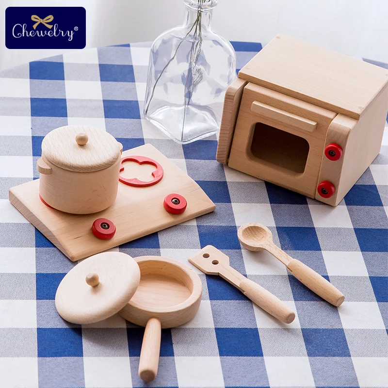 Деревянный кухонный набор для детей, набор из чайных горшков из бука, игрушка, барбекю, 1:12, кухонные аксессуары, детские товары Монтессори, подарок, 1 комплект