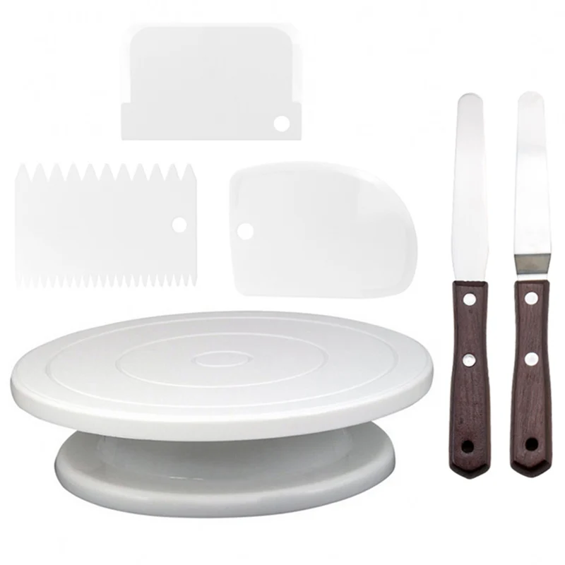 6 шт., пластиковая подставка для торта, поворотный стол, инструменты для украшения торта, лопатка для масла из нержавеющей стали нож для кремового торта, пластиковый нож для теста