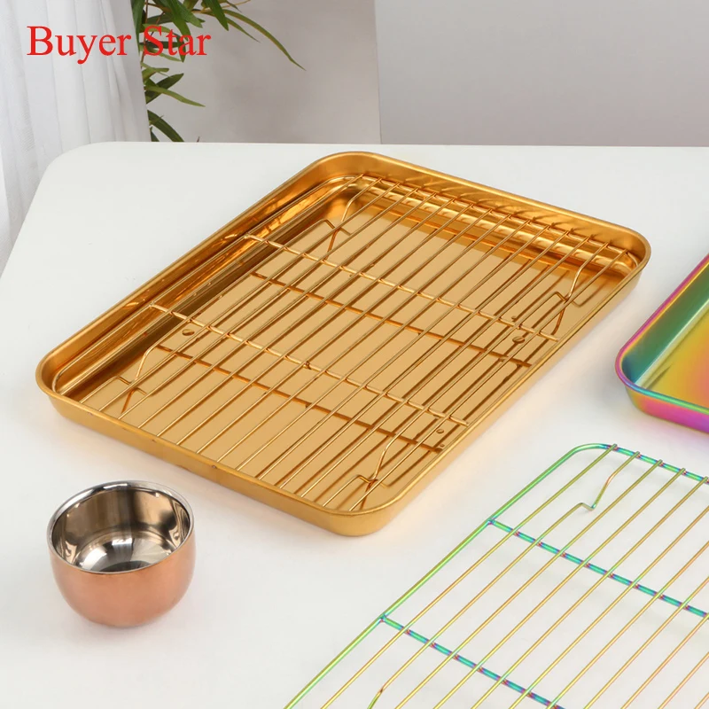 1/2 шт. Золотой контейнер для хранения из нержавеющей стали поднос квадратный пищевой выставочная пластина с Охладительная решетка для слива масла противень для барбекю инструмент