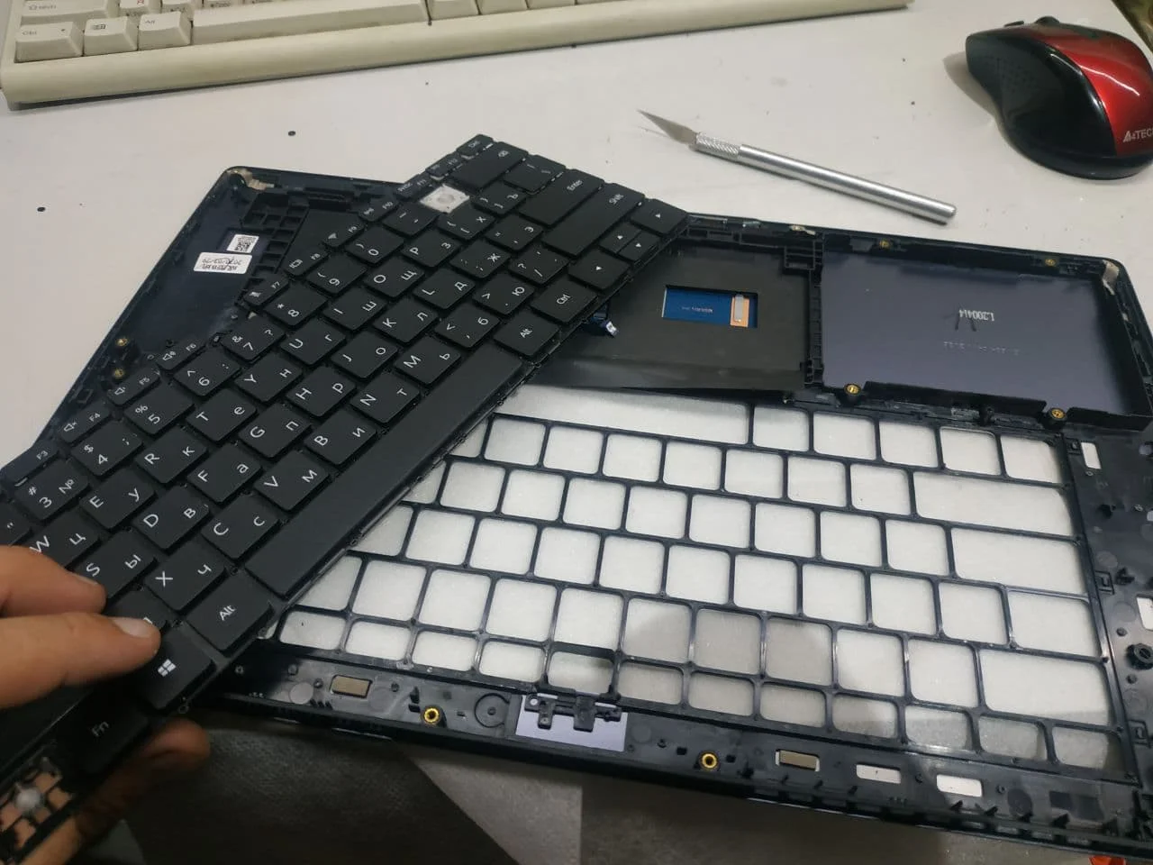качество отличное. ни чем не отличается от оригинальной клавиатуры кроме фактуры самих кнопок. Оригинальная клавиатура более глянцевая. Эта более матовая. Доставка очень быстрая. меньше недели. При замене требуется большая аккуратность и терпение. Главное не погнуть внутреннюю металлическую рамку и не выкидывать срезанные остатки пластика с монтажных штырьков они пригодятся при обратной сборке.