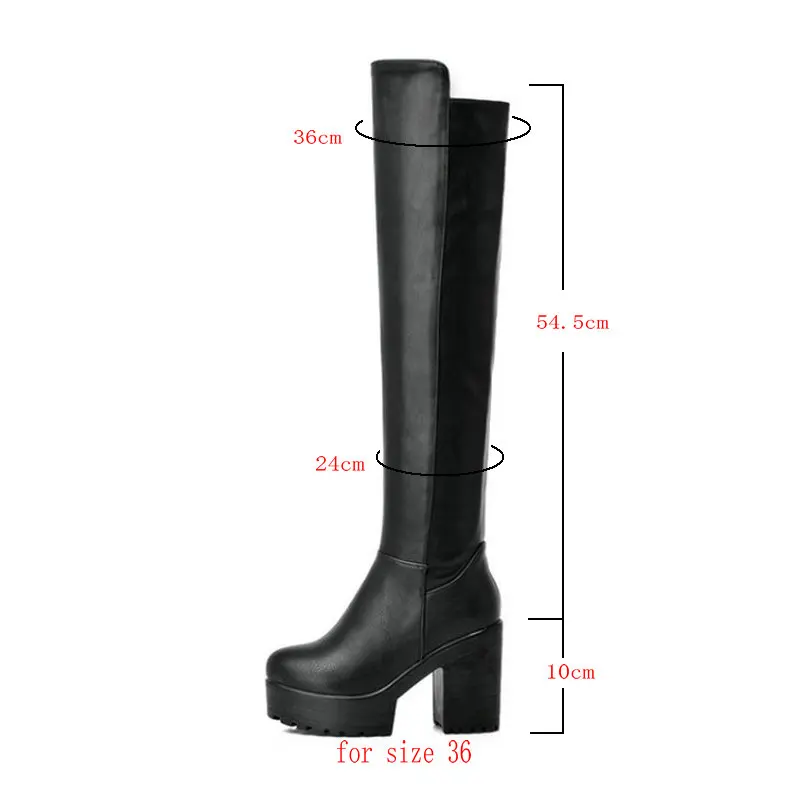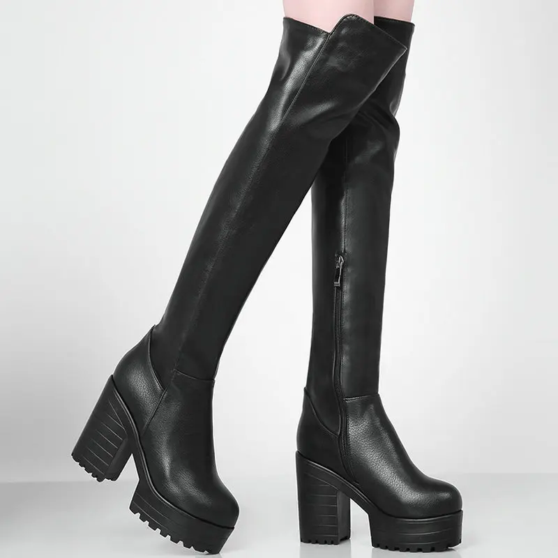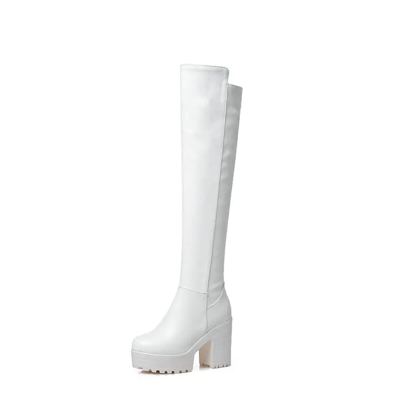 Женские сапоги выше колена на платформе и квадратном каблуке, модные женские длинные сапоги из искусственной кожи на молнии, зимние сапоги черного и белого цвета, 2020