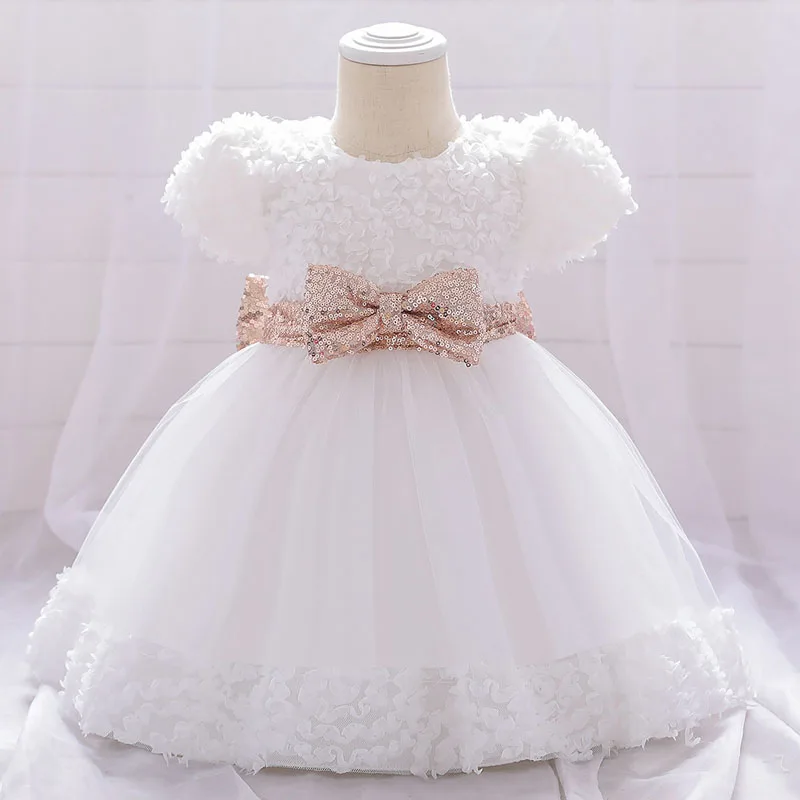 2021 г. Платья принцессы для маленьких девочек детское платье для одного года бант с пайетками Хлопковые Платья с трехмерными лепестками для девочек, От 1 до 5 лет