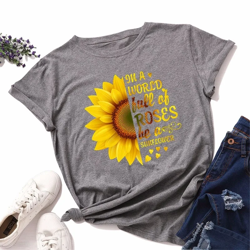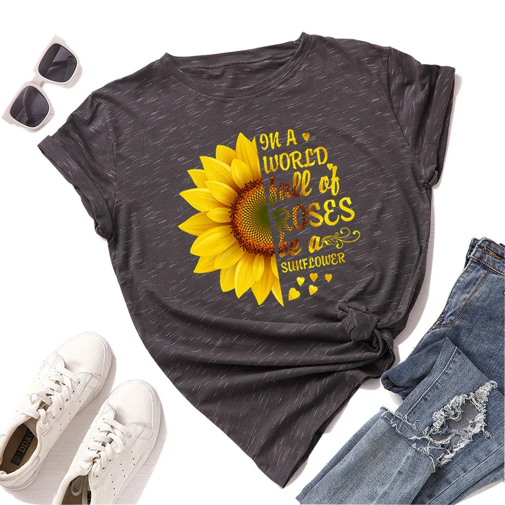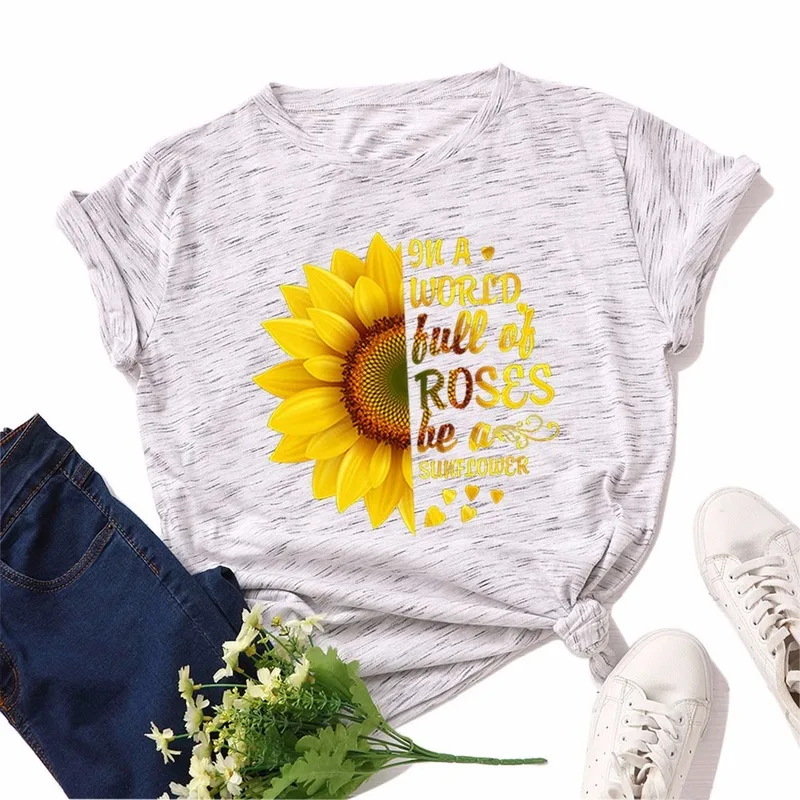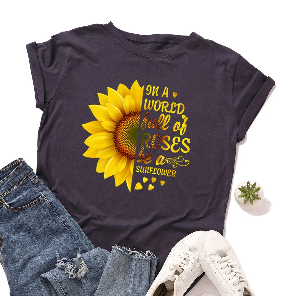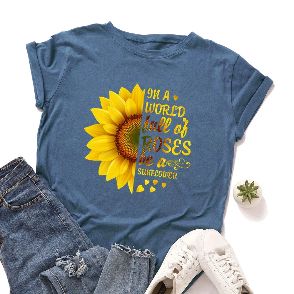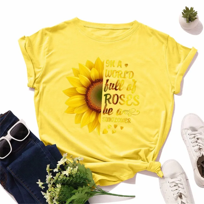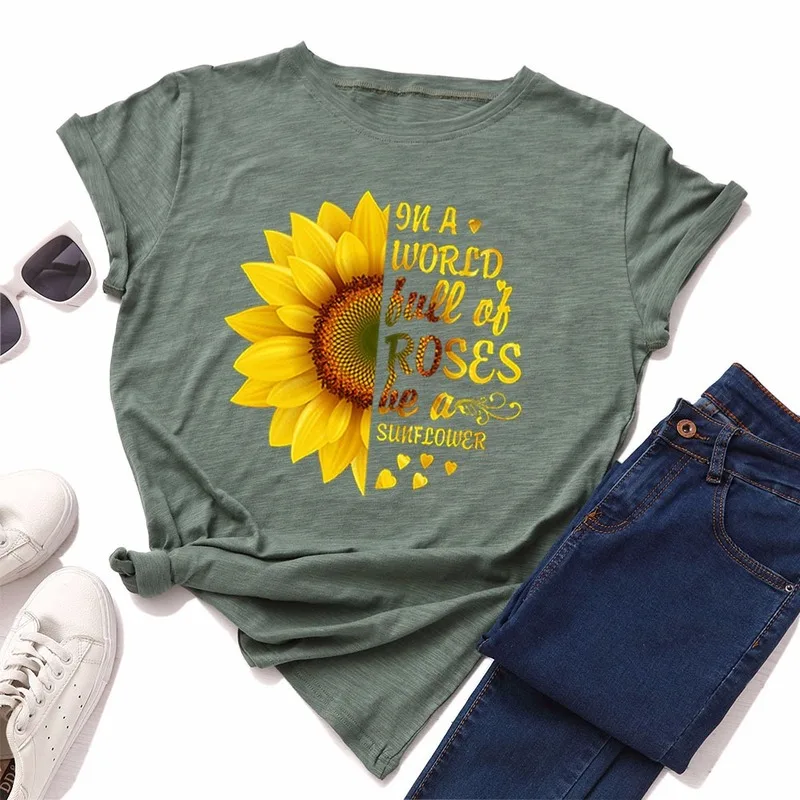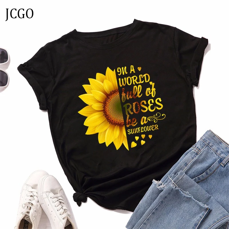 Летняя женская футболка JCGO, разноцветная Женская футболка из хлопка с цветочным принтом и коротким рукавом, повседневная женская футболка с круглым вырезом
