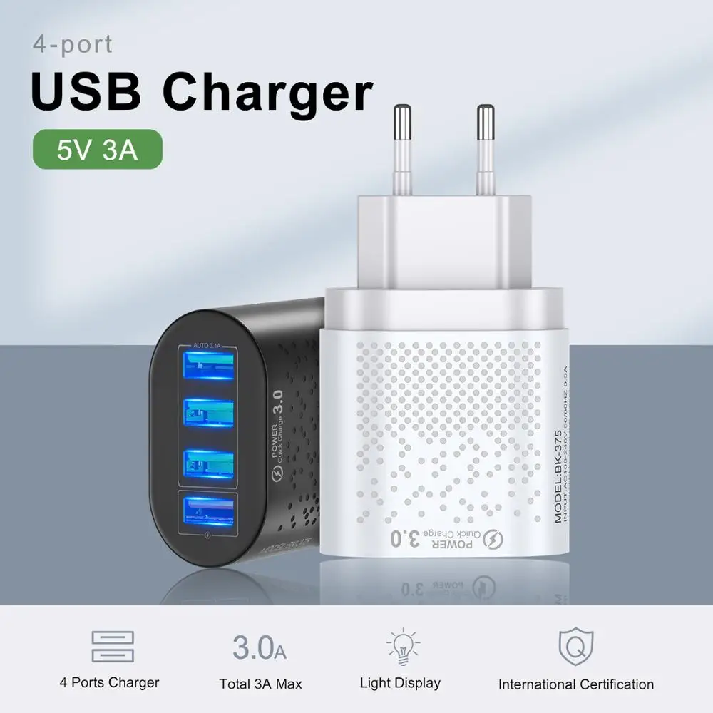 Сетевое зарядное устройство с 4 USB-портами, 48 Вт, 5 В, 3 А