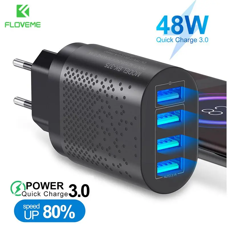 Зарядное устройство FLOVEME сетевое с 4 USB-портами, 3 А, 48 Вт