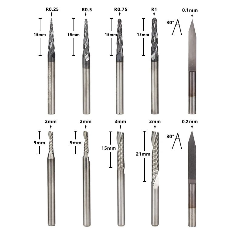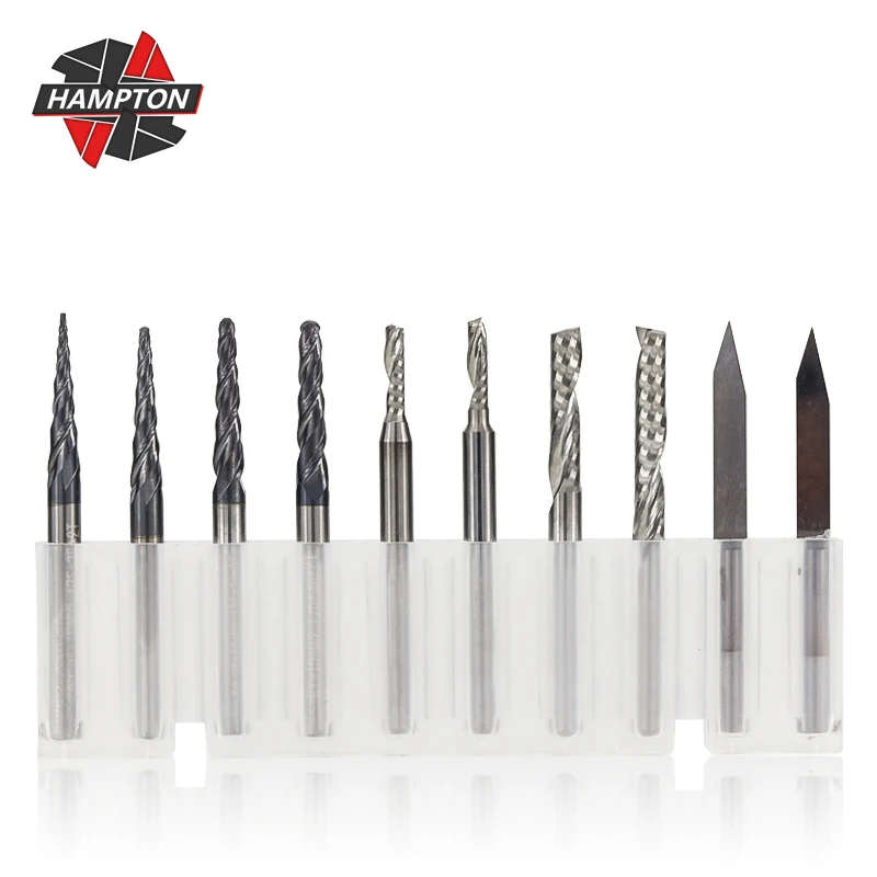 Хэмптон 10 шт 3,175 мм хвостовик фрезы Набор CNC Твердые карбидные наконечники для гравировки фреза Набор для резьбы по дереву