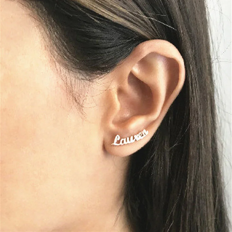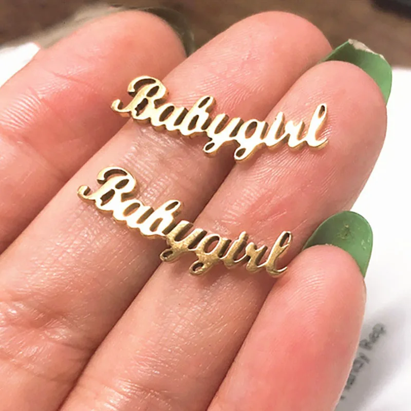 Серьги-гвоздики из нержавеющей стали под золото на заказ, простые классические украшения сделай сам для пирсинга с именем, для женщин и мужчин, ювелирные изделия