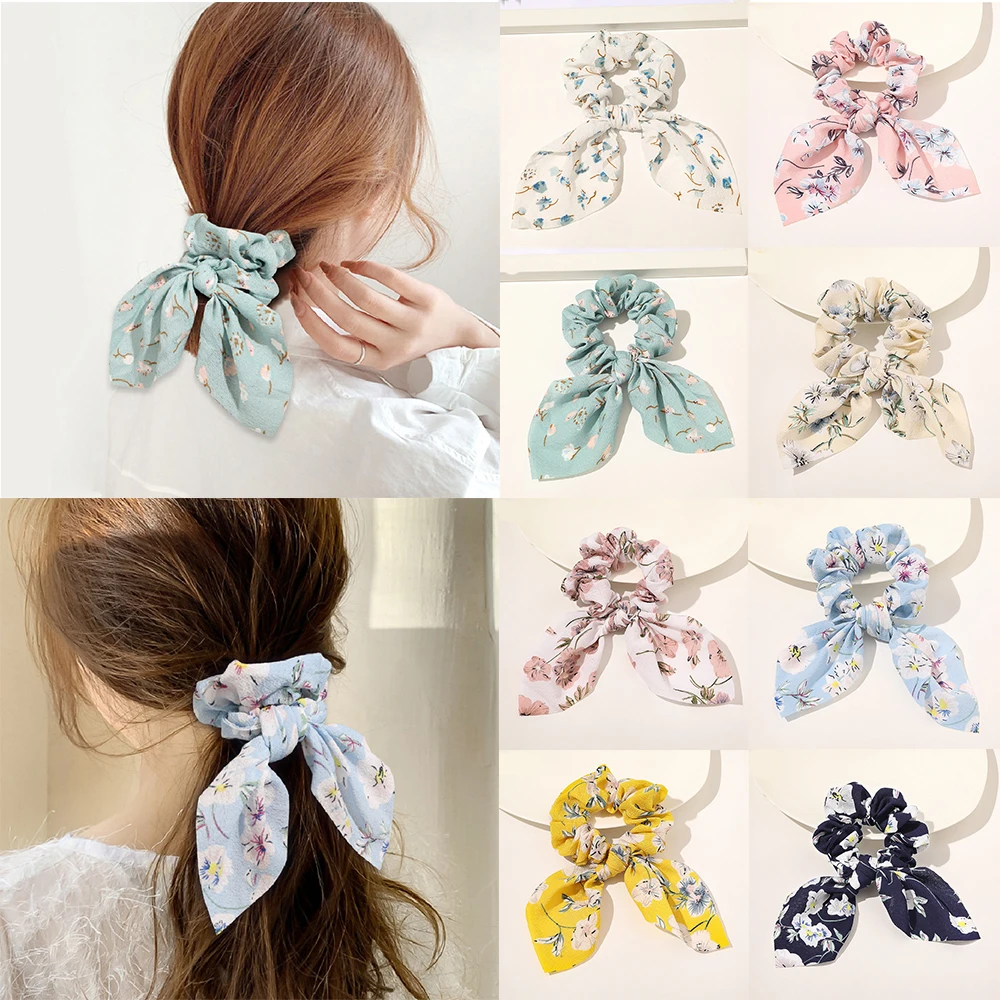Модное кольцо для волос с кроличьими ушками и цветочным принтом, женский головной убор, Классический Цветочный простой держатель для волос