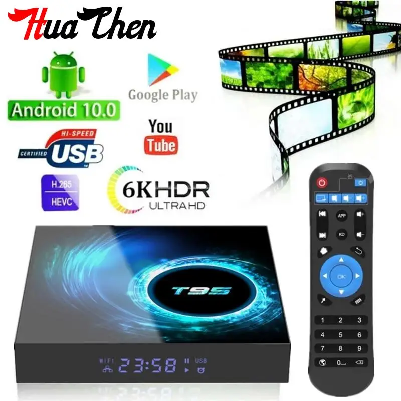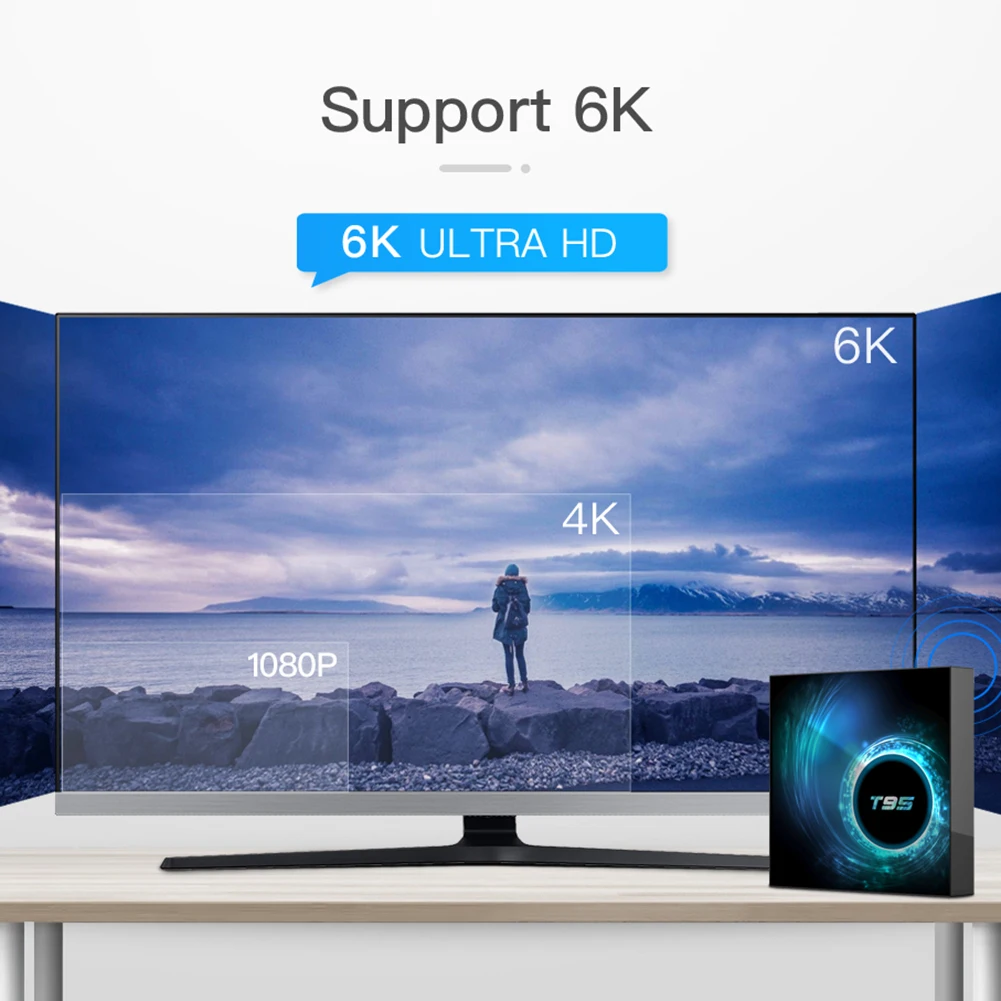 T95 Android10 ТВ коробка Allwinner H616 4 ядра, 4 ГБ64 Гб 2,4 ГГц двухъядерный процессор Wi-Fi 3D 6K H.265 медиа-проигрыватель Youtube IPTV Set-Top Box ТВ комплект компьютерной приставки к телевизору