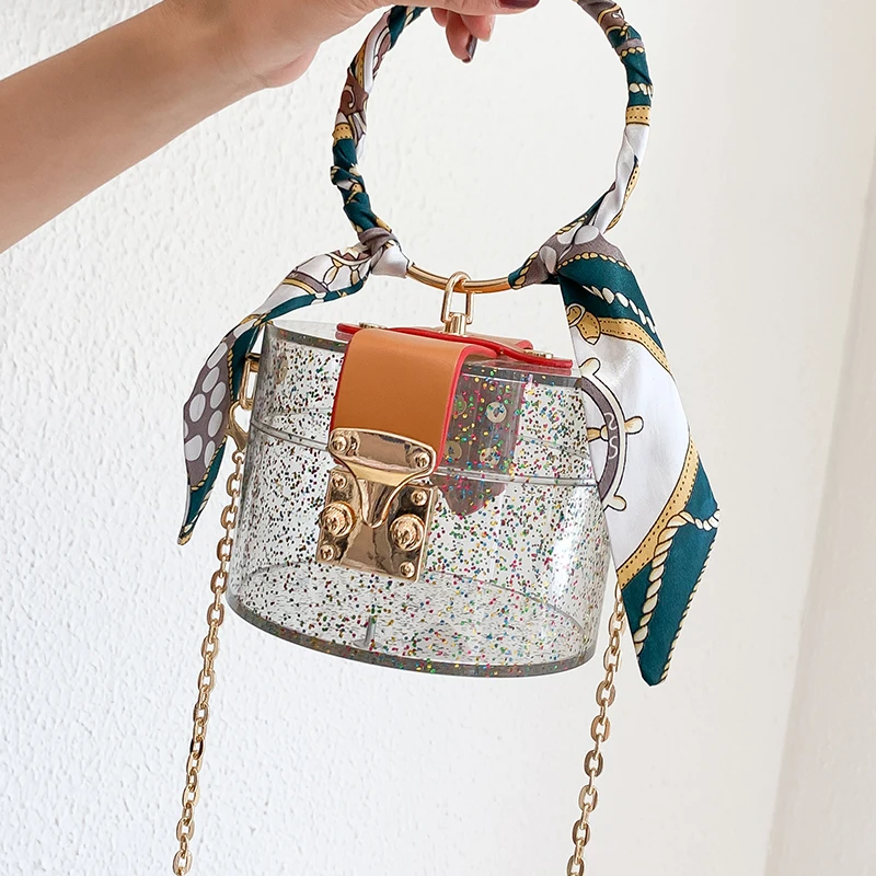 Прозрачный пластиковый женский клатч с золотыми ручками-кольцами, модные кошельки и сумочки, вечерний клатч, сумка-тоут на плечо с цепочкой
