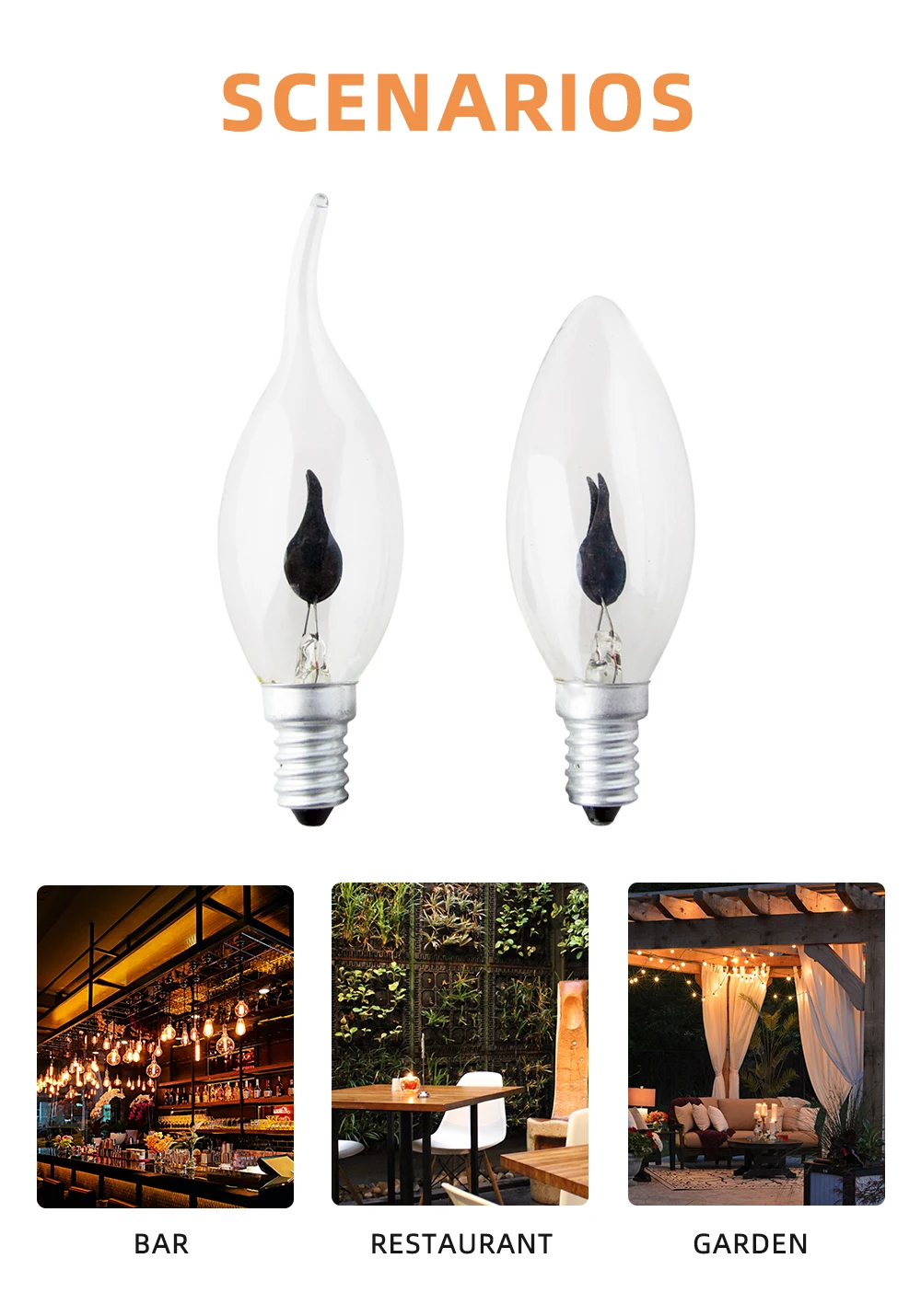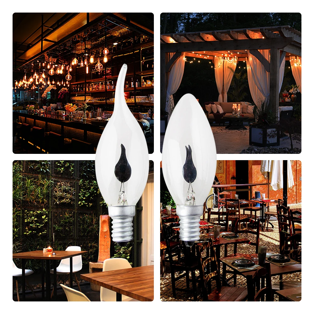 10 шт.лот 3 Вт E14 вольфрамовые лампы E27 лампочка с пламенем AC220 в мерцающее пламя светодиодная лампочка-свеча Многоуровневое винтажное огневое освещение
