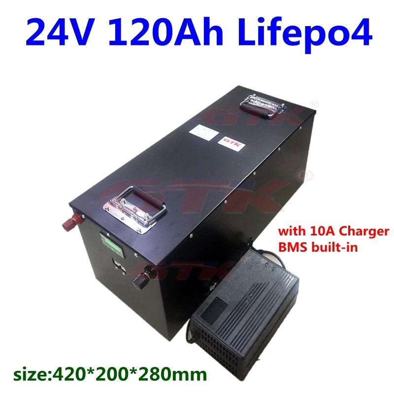 2шт GTK Lifepo4 24В 120Ah литиевая батарея с BMS для RV, инвертор для дома, солнечная система + 1 шт 10А зарядное устройство