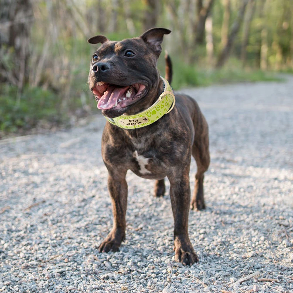 Название: персонализированный ошейник для собак, мягкий кожаный персонализированный ошейник для щенков, товары с принтом питбуля ошейники для питомцев для маленьких, средних и крупных собак