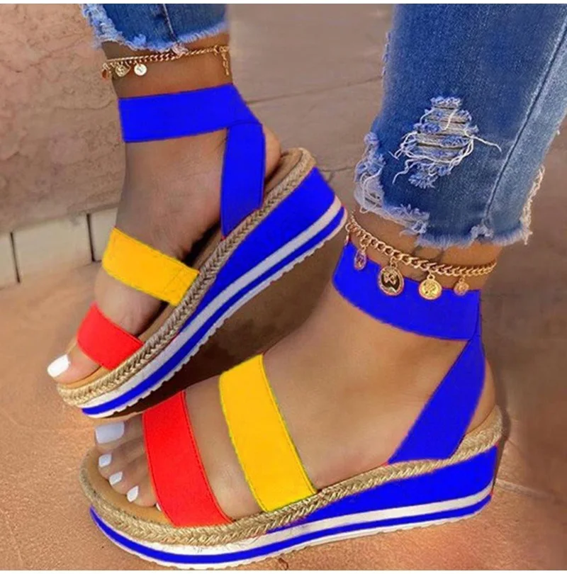 Сандалии женские на танкетке, босоножки конфетных цветов, без засте...