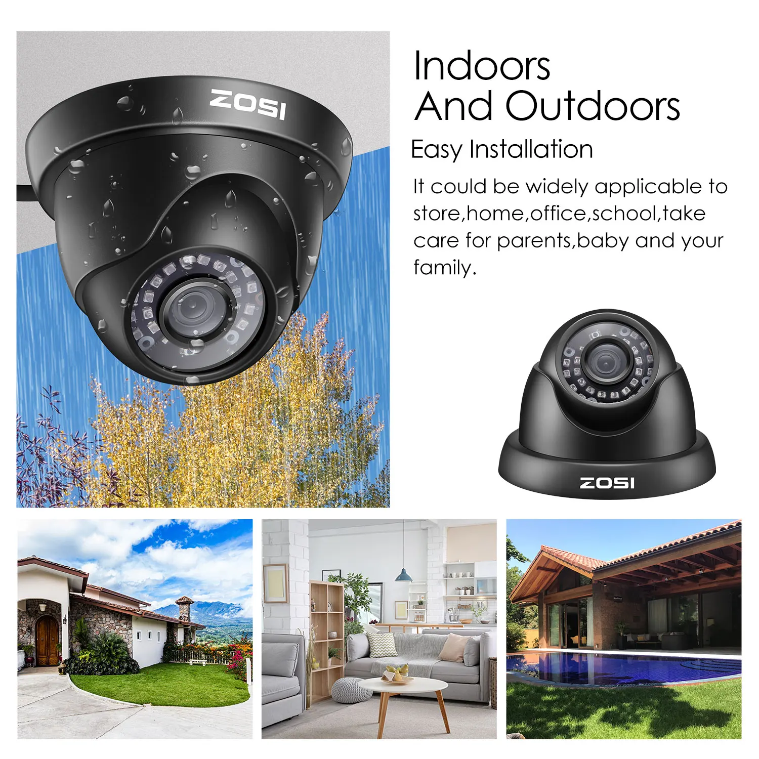 Камера IP66 с защитой от атмосферных воздействий подходит как для использования в помещении, так и для использования на улице, она отлично подходит для любых погодных условий.