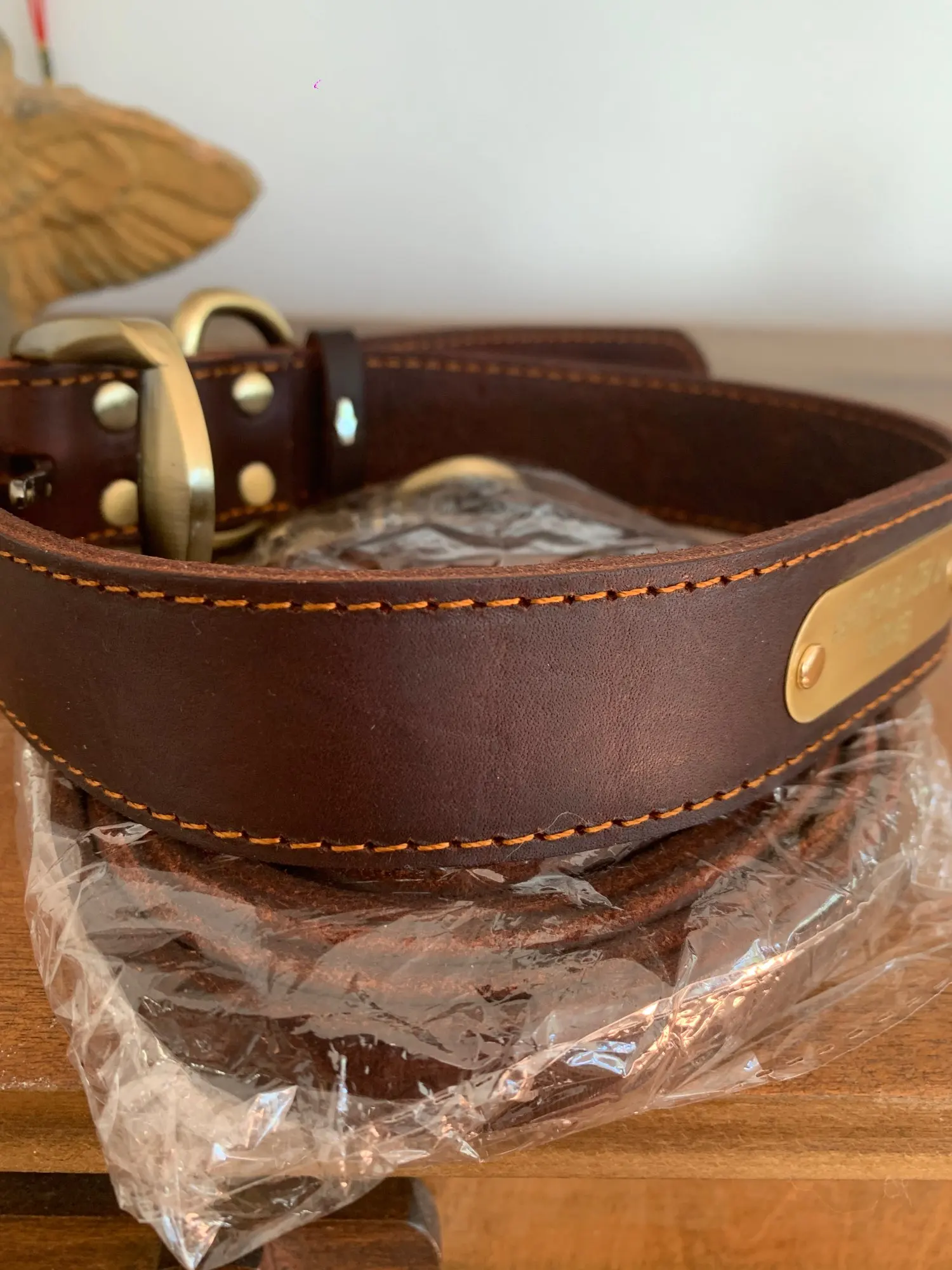 Ожерелье очень красивое, выглядит как кожа, очень прочная, правильная гравировка на тарелке. Я прибываю очень быстро, менее чем за 1 месяц.