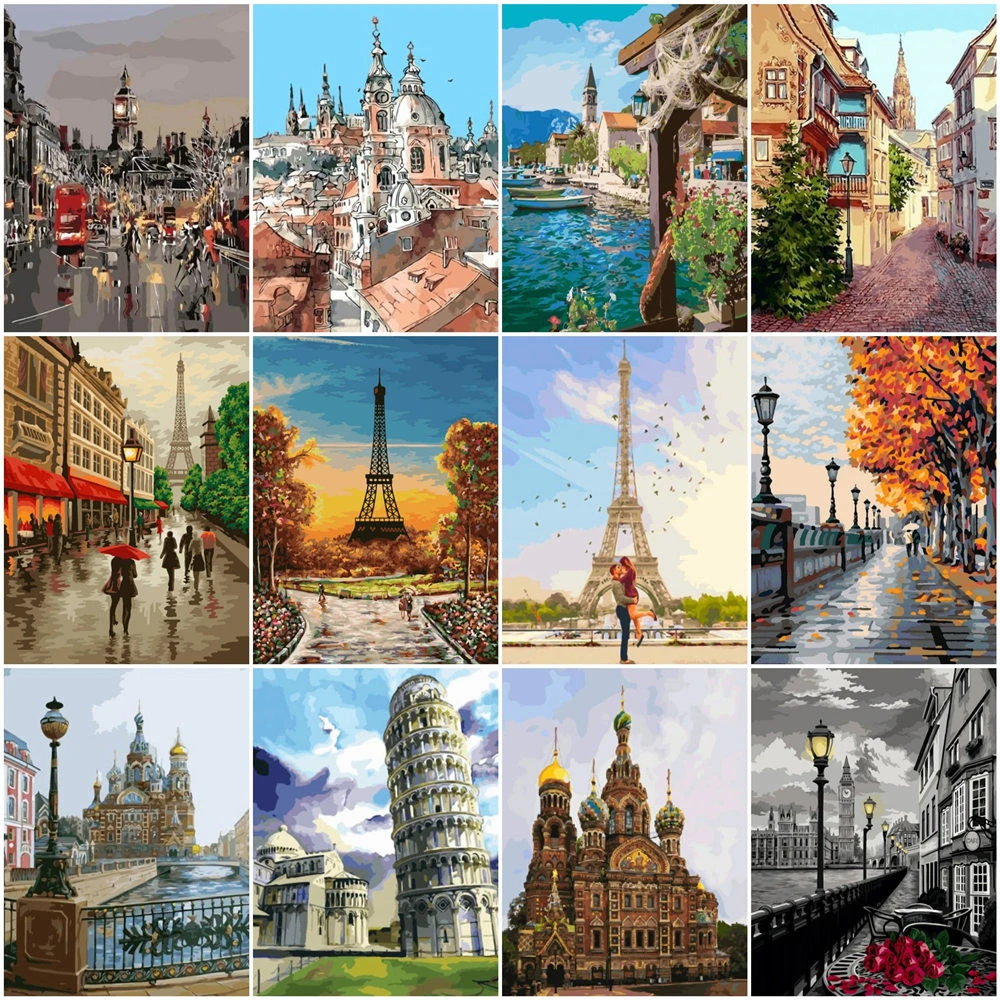 HUACAN DIY картинки по номеру город пейзажные наборы домашний декор...