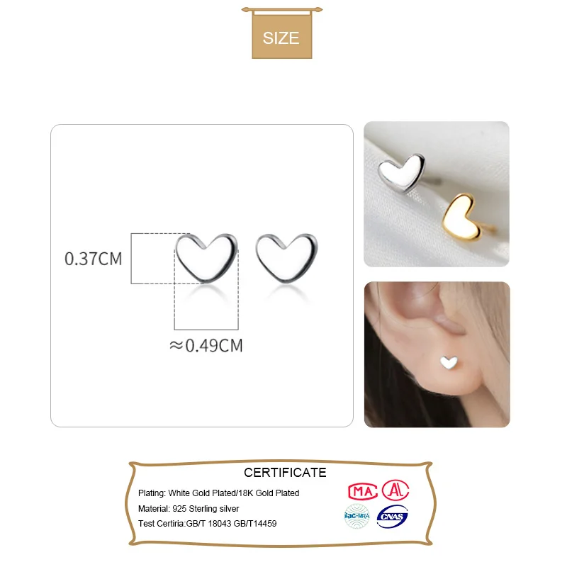 Маленькие серьги-гвоздики в форме сердца для женщин и дочек, подарок на день рождения для детей, Изящные Ювелирные изделия, серьги из стерлингового серебра 925 пробы DS019