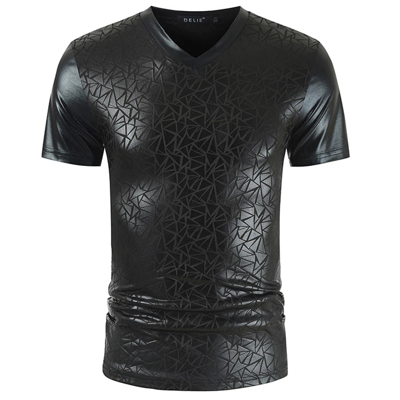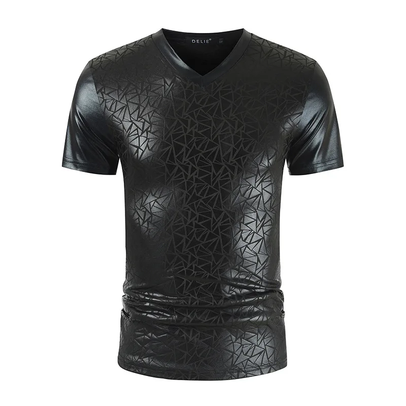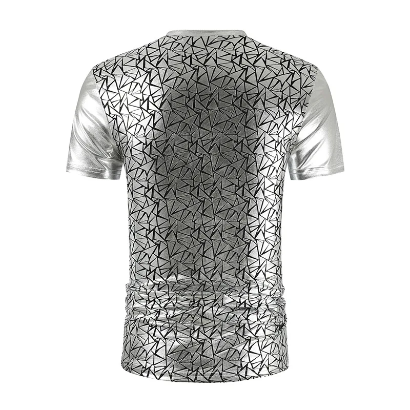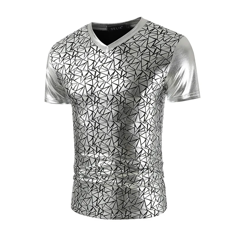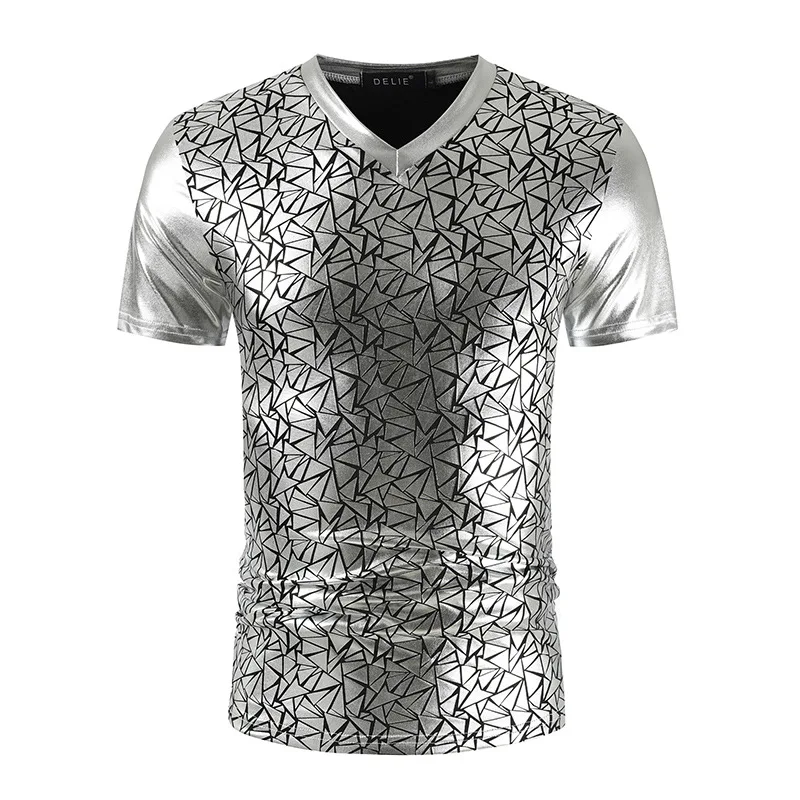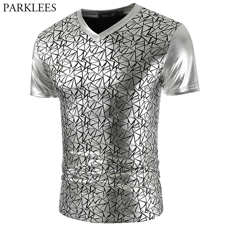 Мужская облегающая футболка с геометрическим узором, Блестящая Серебристая, металлическая, с V-образным вырезом, для выпускного вечера, 2020